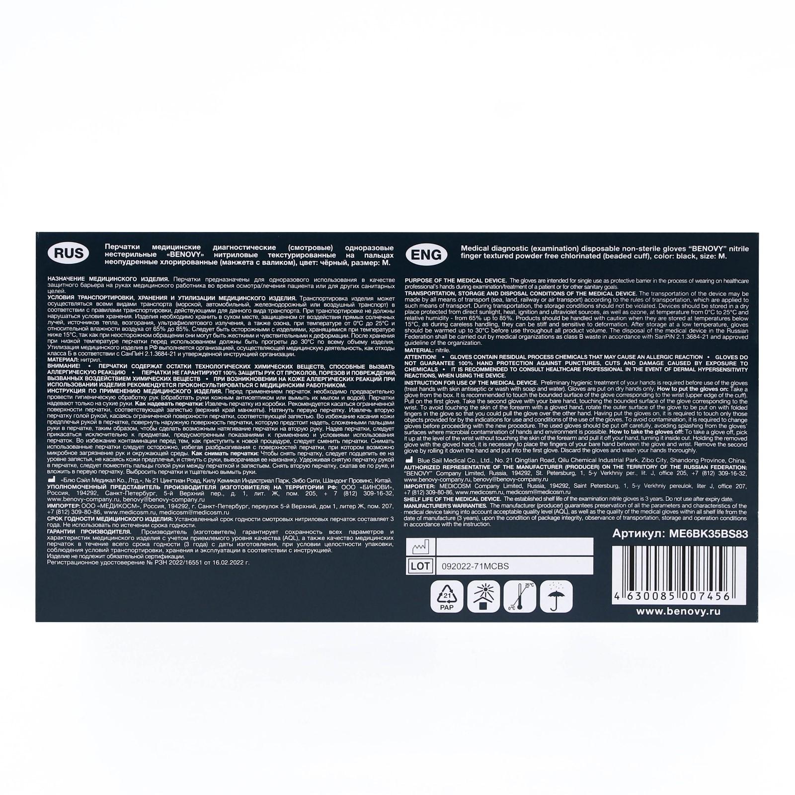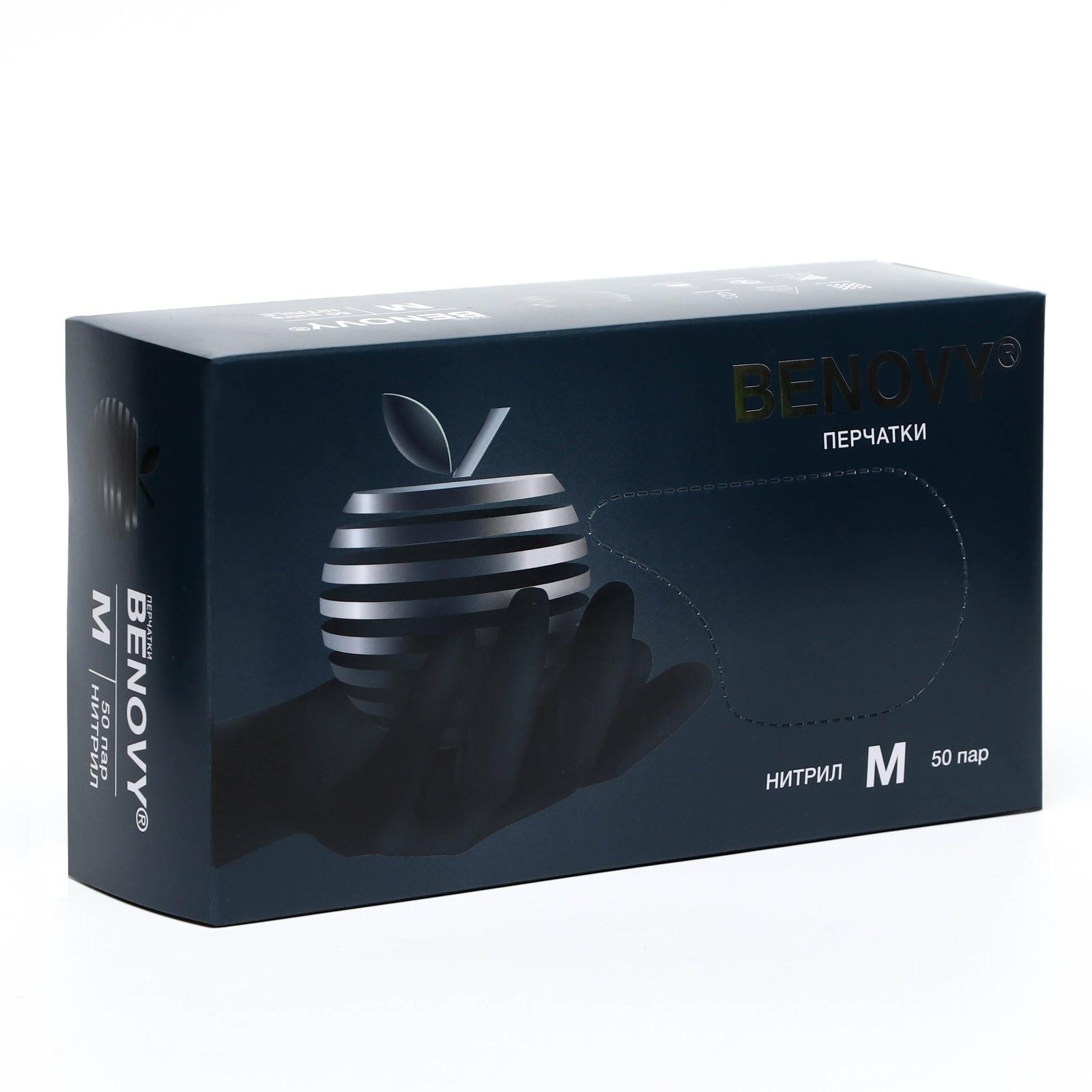 Перчатки медицинские нитриловые нестерильные текстурированные черные Benovy, М 50 пар.