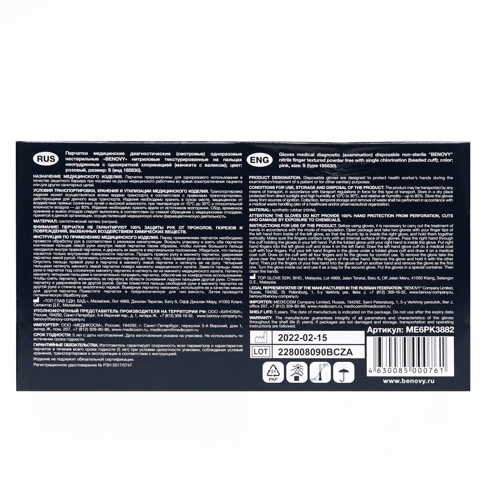 Перчатки нитриловые медицинские, Benovy S, 50 пар. розовые, цена за 1 пару