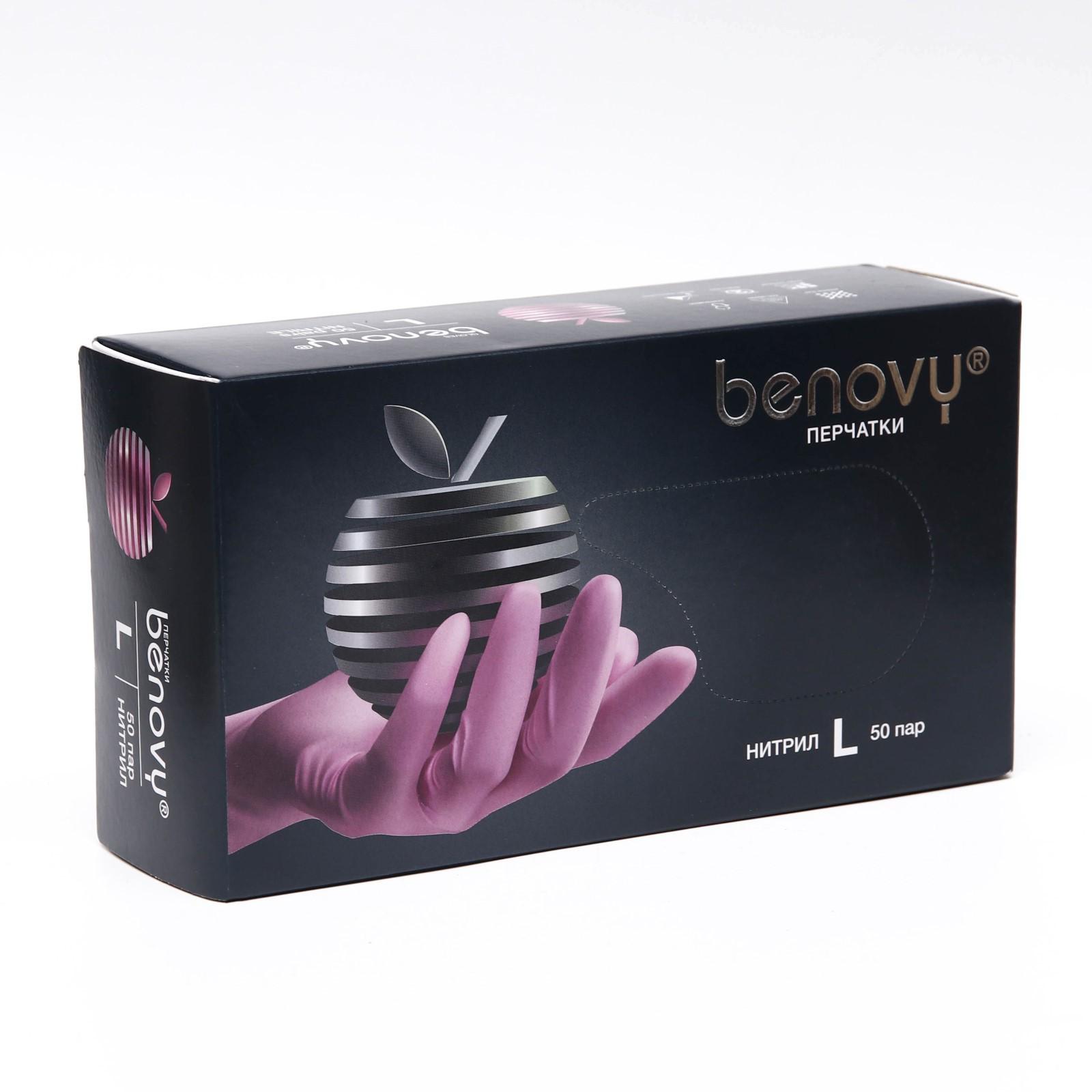 Перчатки медицинские нитриловые нестерильные текстурированные розовые Benovy L, 50 пар