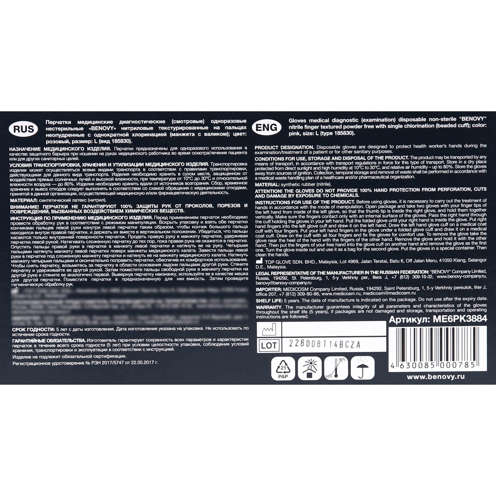 Перчатки медицинские нитриловые нестерильные текстурированные розовые Benovy L широко используются в медицине, в сфере красоты, в быту. Предпочтительны для использования мастерами маникюра, депиляции и косметологов.