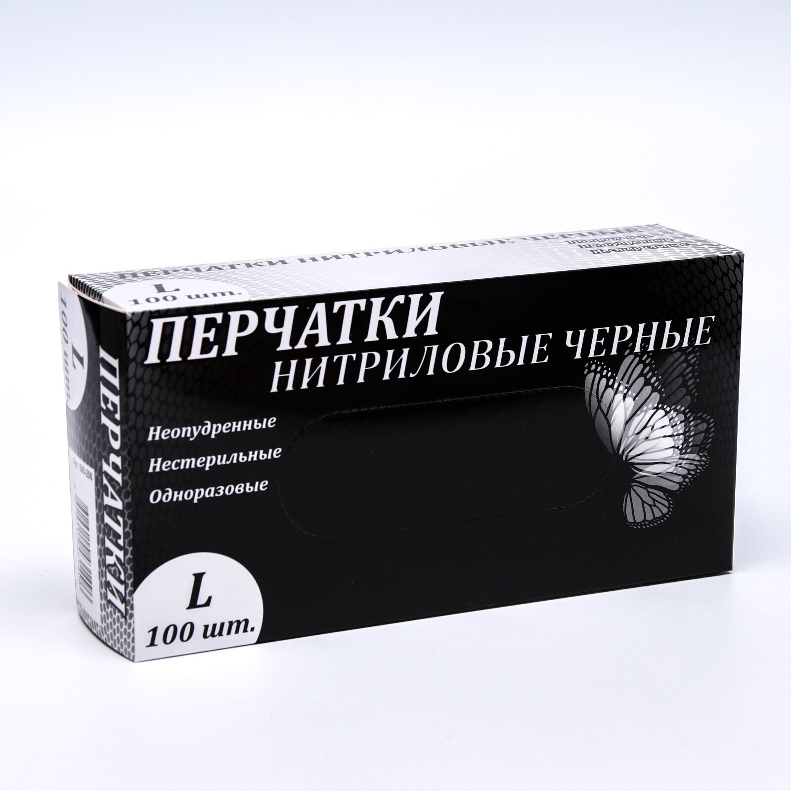 Перчатки нитриловые, усиленные, неопудренные, черные, размер L, 50 пар