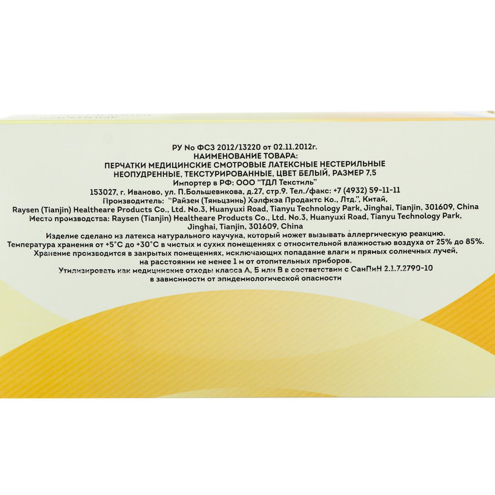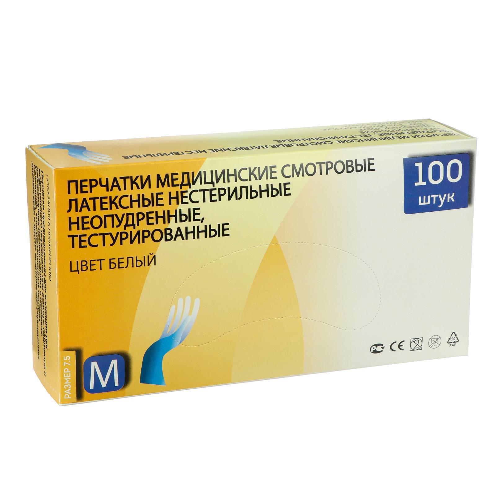 Перчатки медицинские, латексные, неопудренные, размер M, 50 пар, белые