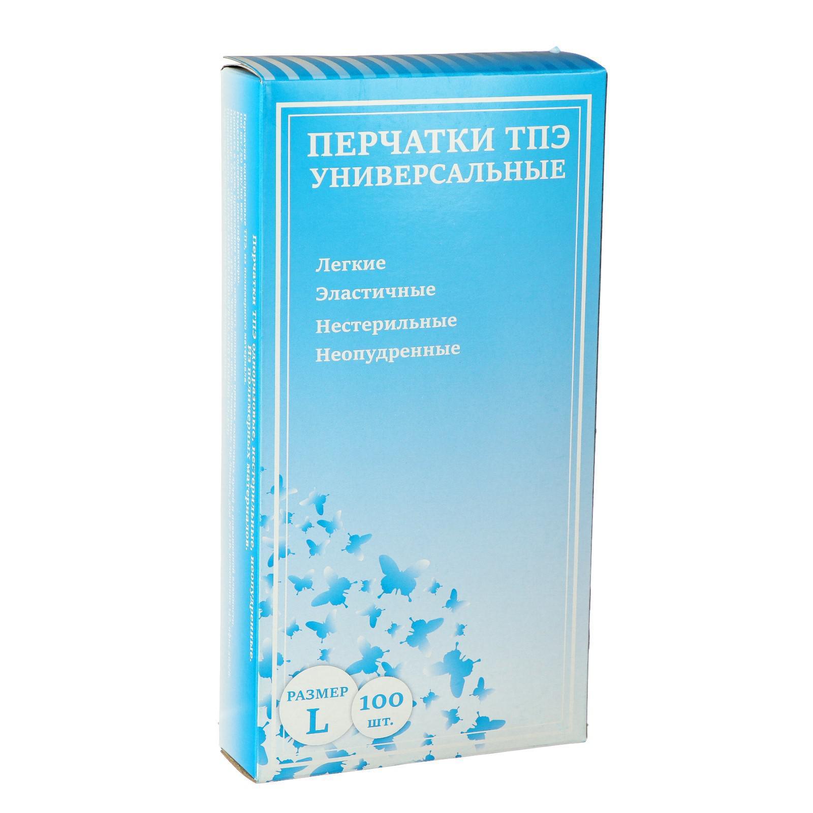 Перчатки из термоэластопласта, неопудренные, размер L, 100 шт.