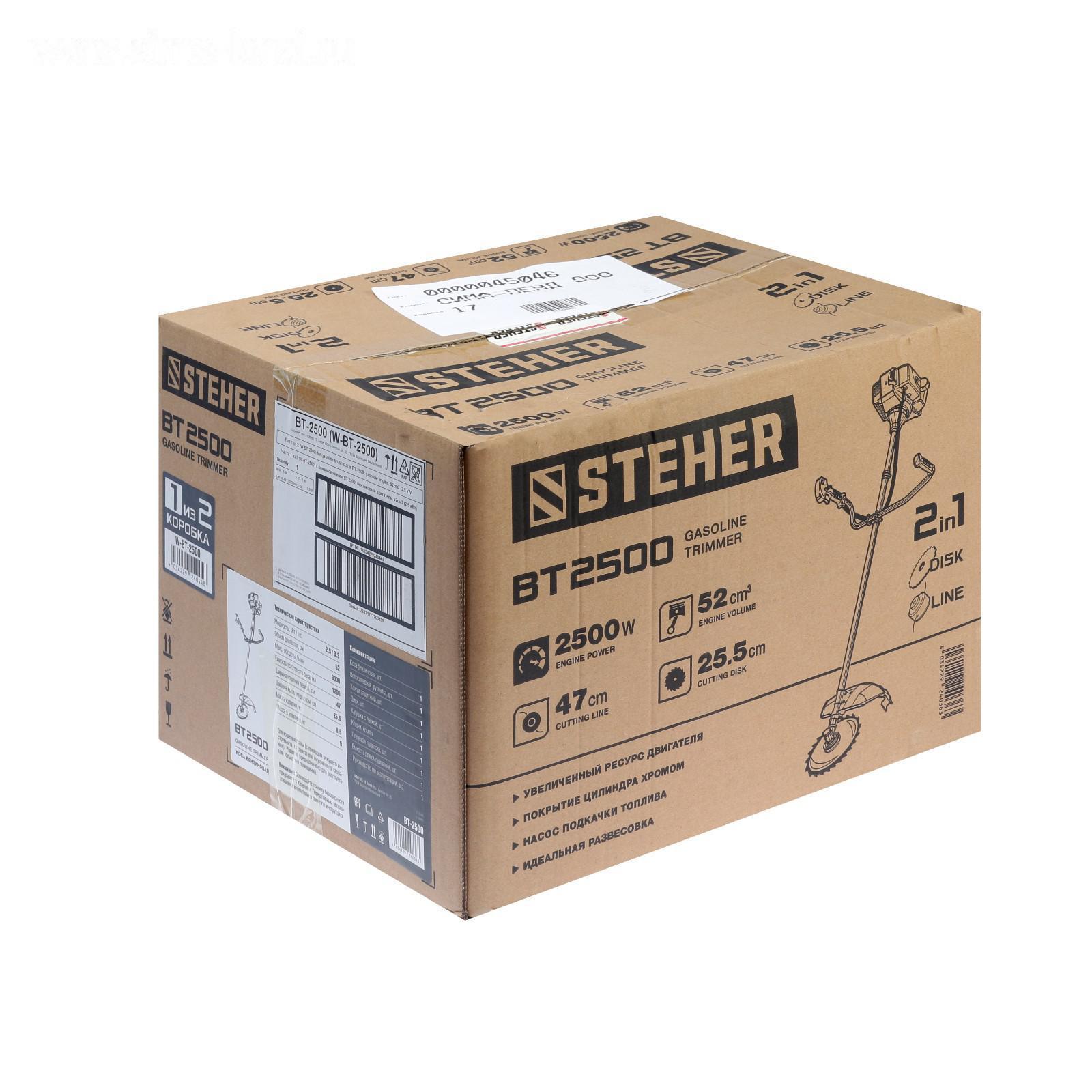 Триммер STEHER BT-2500, 2Т, 2500 Вт, 3.3 л.с., 52 см3, 9000 об/мин, скос 47 см, леска/диск