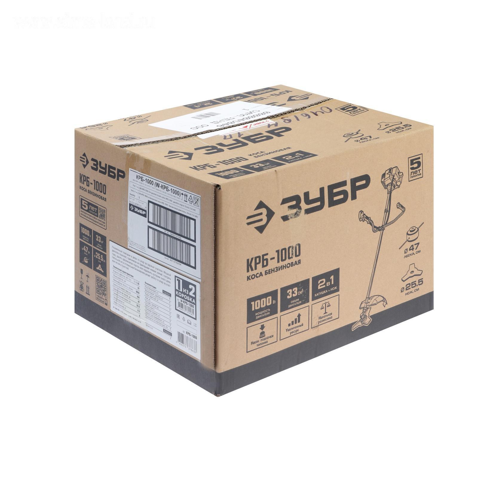 Триммер "ЗУБР" КРБ-1000, 2Т, 1000 Вт, 1.35 л.с., 33 см3, 9000 об/мин, скос 47 см, леска/нож