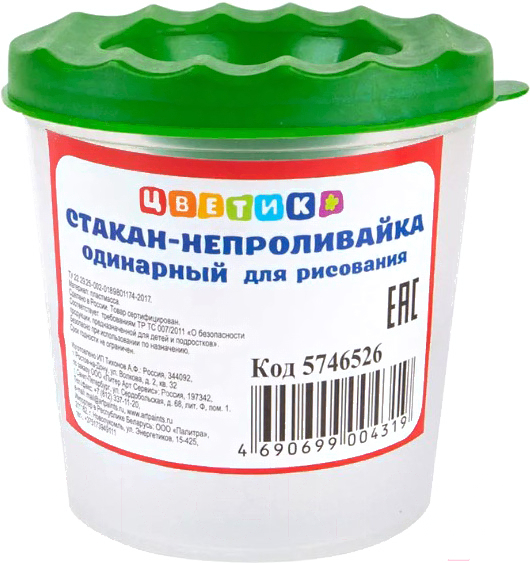 - Цвет прозрачный (стакан), зависит от партии поставки (зеленый, синий — крышка)