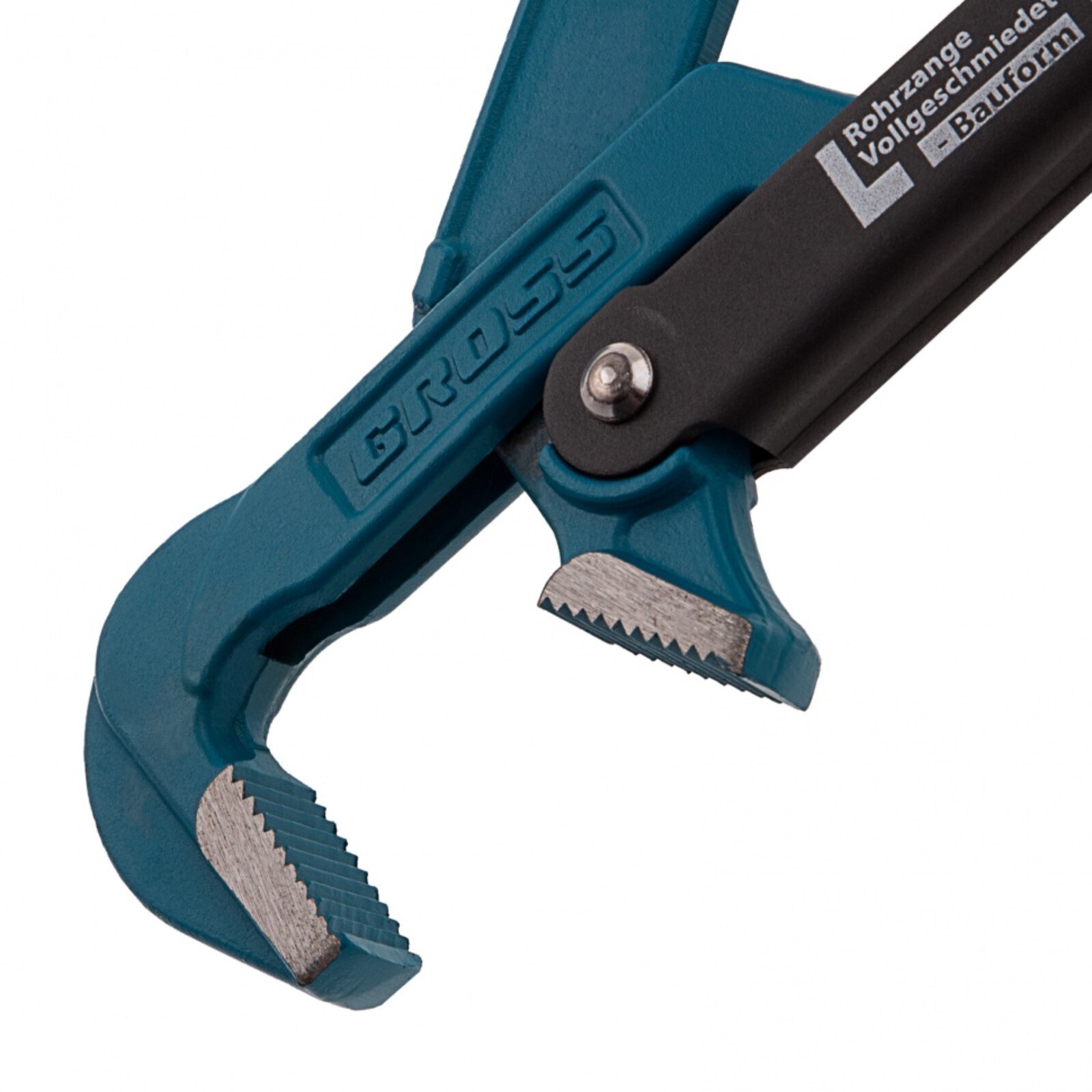 Ключ GROSS применяется для фиксации и вращения труб и болтов при проведении сантехнических работ. Губки инструмента закалены до твёрдости 60 HRC. Приспособление изготовлено из хромованадиевой стали, которая гарантирует его износостойкость, долговечность и неподверженность коррозии. Специальная форма зубьев обеспечивает самоблокируемый захват деталей.