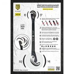 Ключ гаечный BERGER BG-0832QW, многофункциональный, быстрозажимной