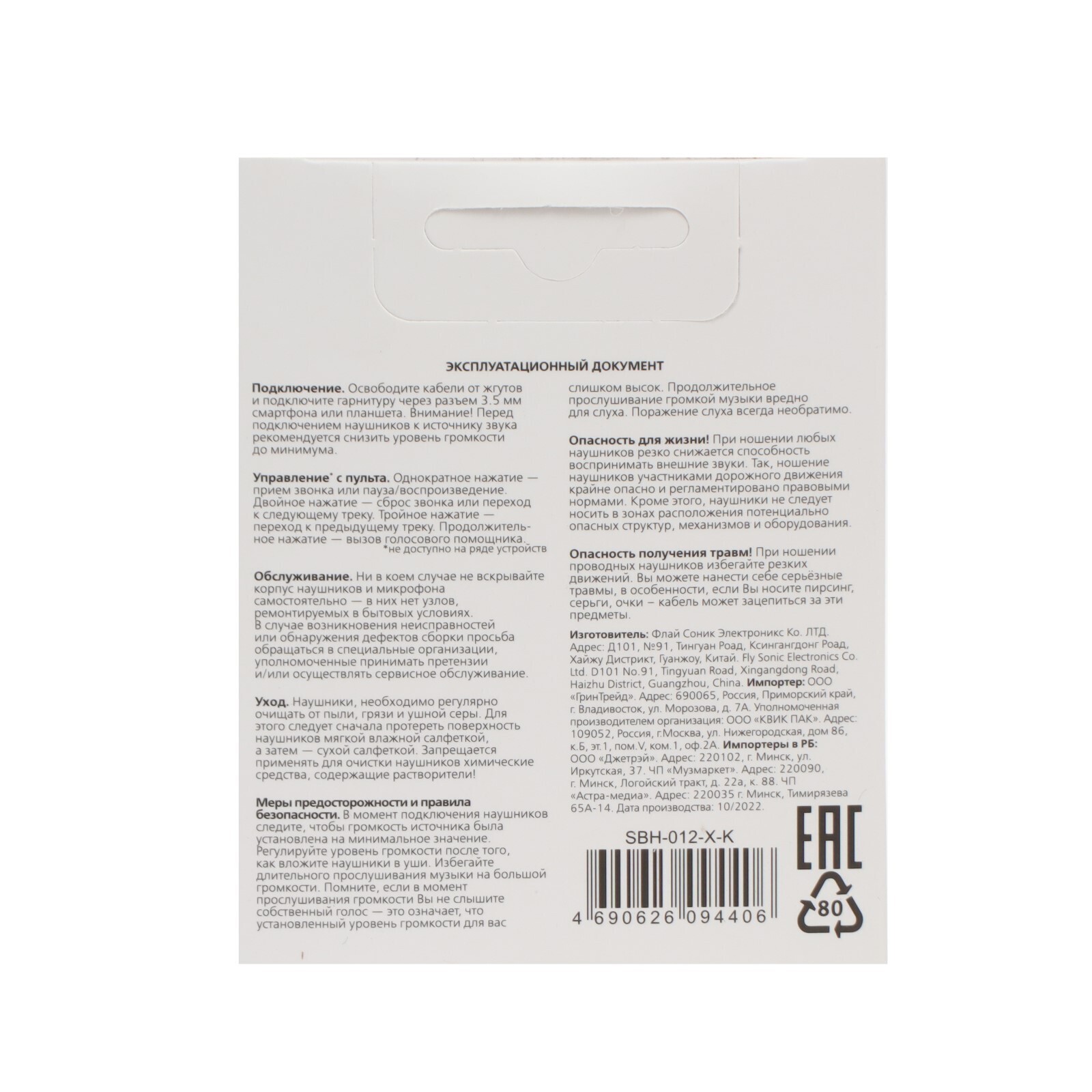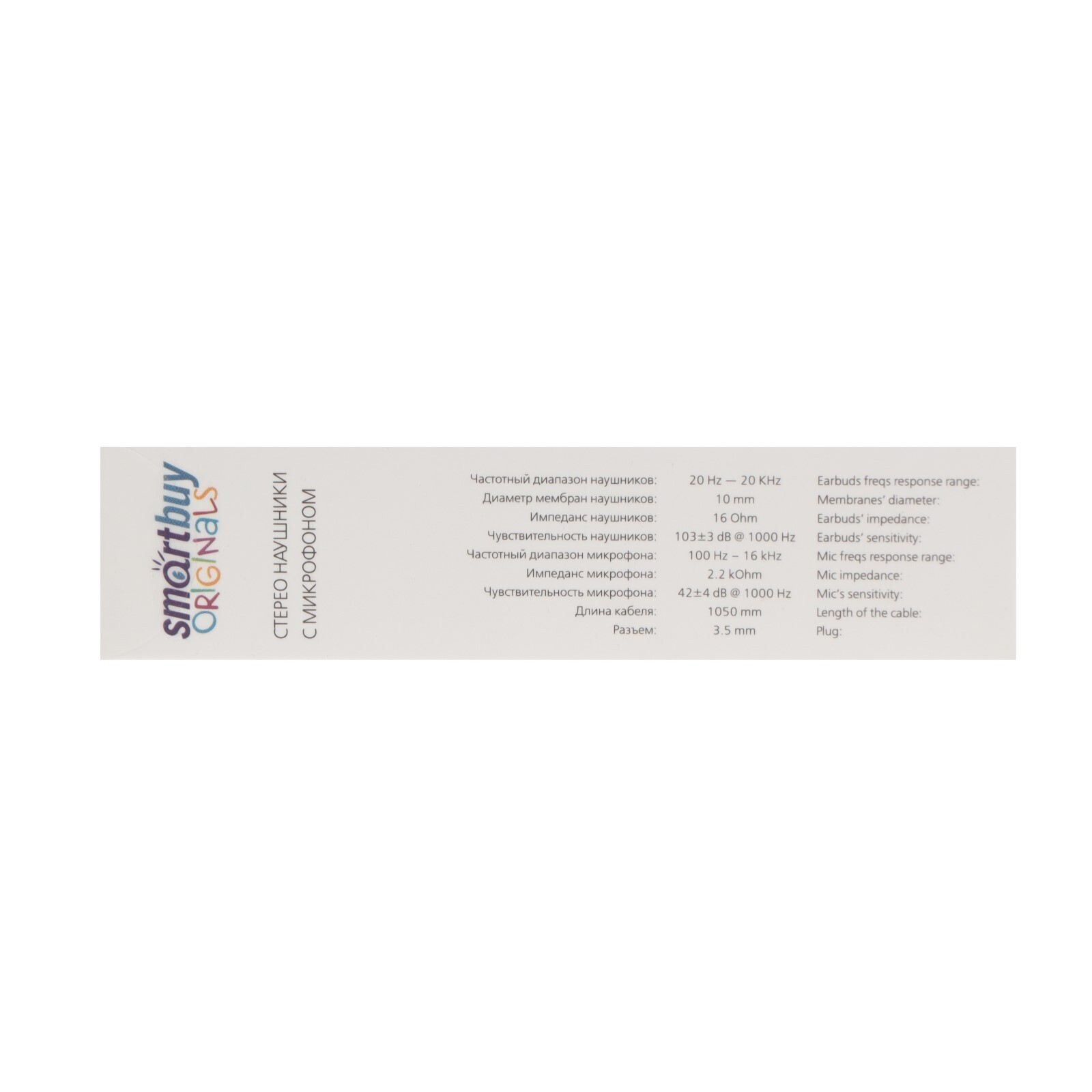 Наушники Smartbuy Model X, вакуумные, микрофон, 105 дБ, 16 Ом, 3.5мм, 1.05 м, белые