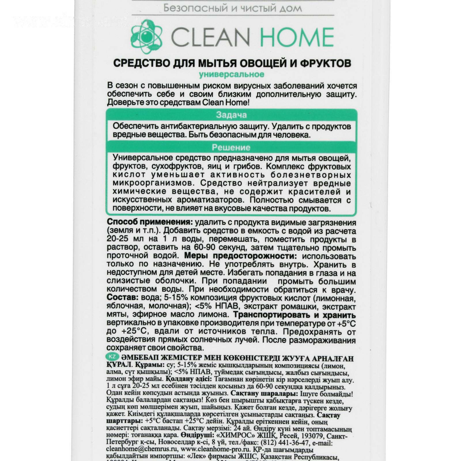 Средство для мытья овощей и фруктов Clean Home, антибактериальное, 200 мл