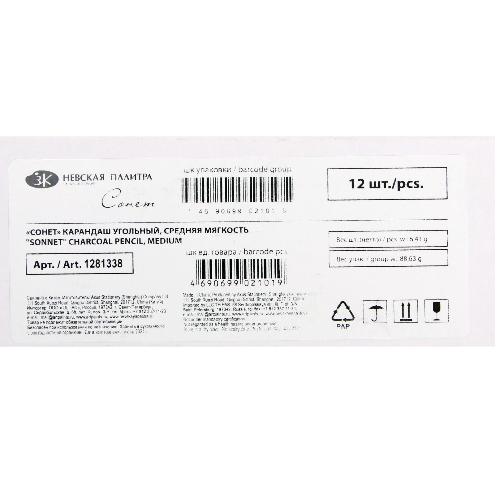 Уголь в карандаше ЗХК Сонет Soft, средняя мягкость