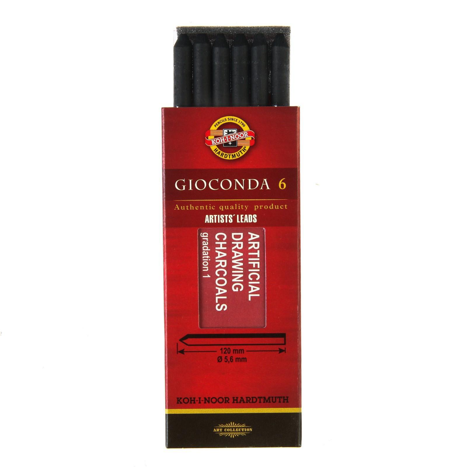 Набор угля художественного искусственного для цанговых карандашей Koh-I-Noor 8673, B, D=5.6 мм, L=120 мм, 6 штук в наборе