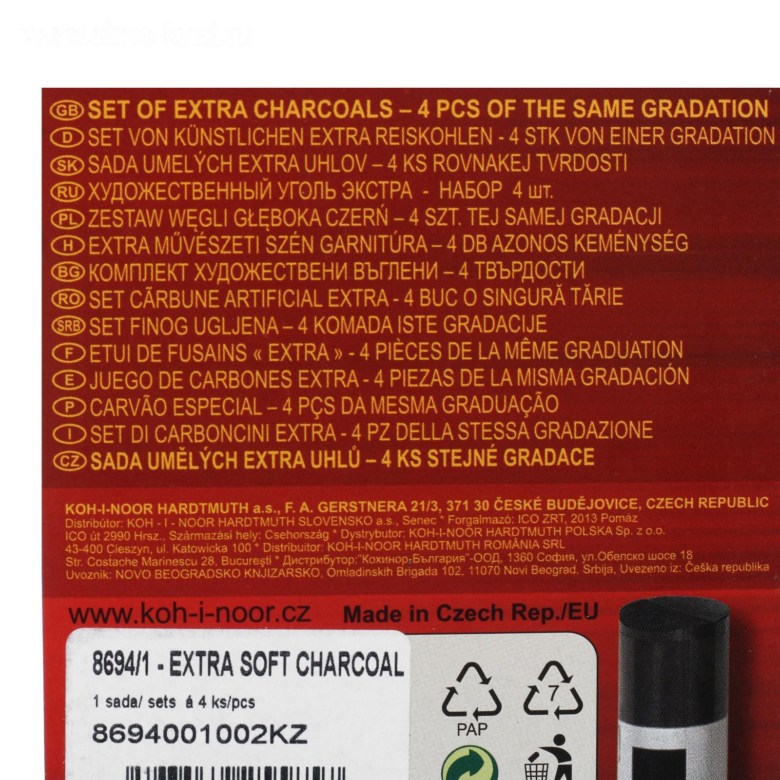 Уголь натуральный набор Koh-I-Noor GIOCONDA, 12.0 мм, 4 штуки разной твёрдости