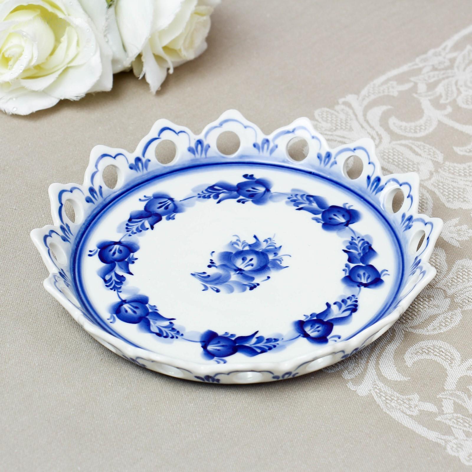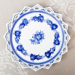 Хлебница «Каравай», гжель, фарфор, 2с