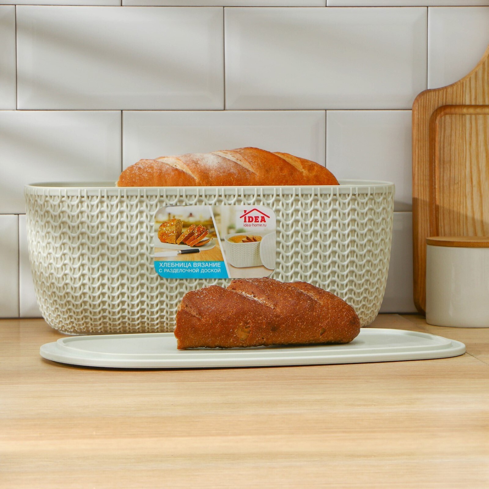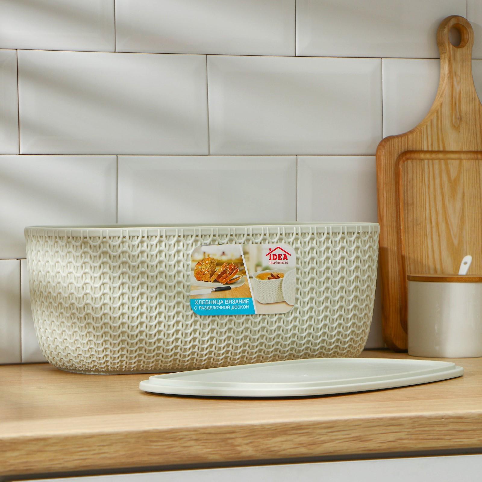 Хлебница «Вязание», с разделочной доской, 35,5×19×14 см, цвет белый ротанг