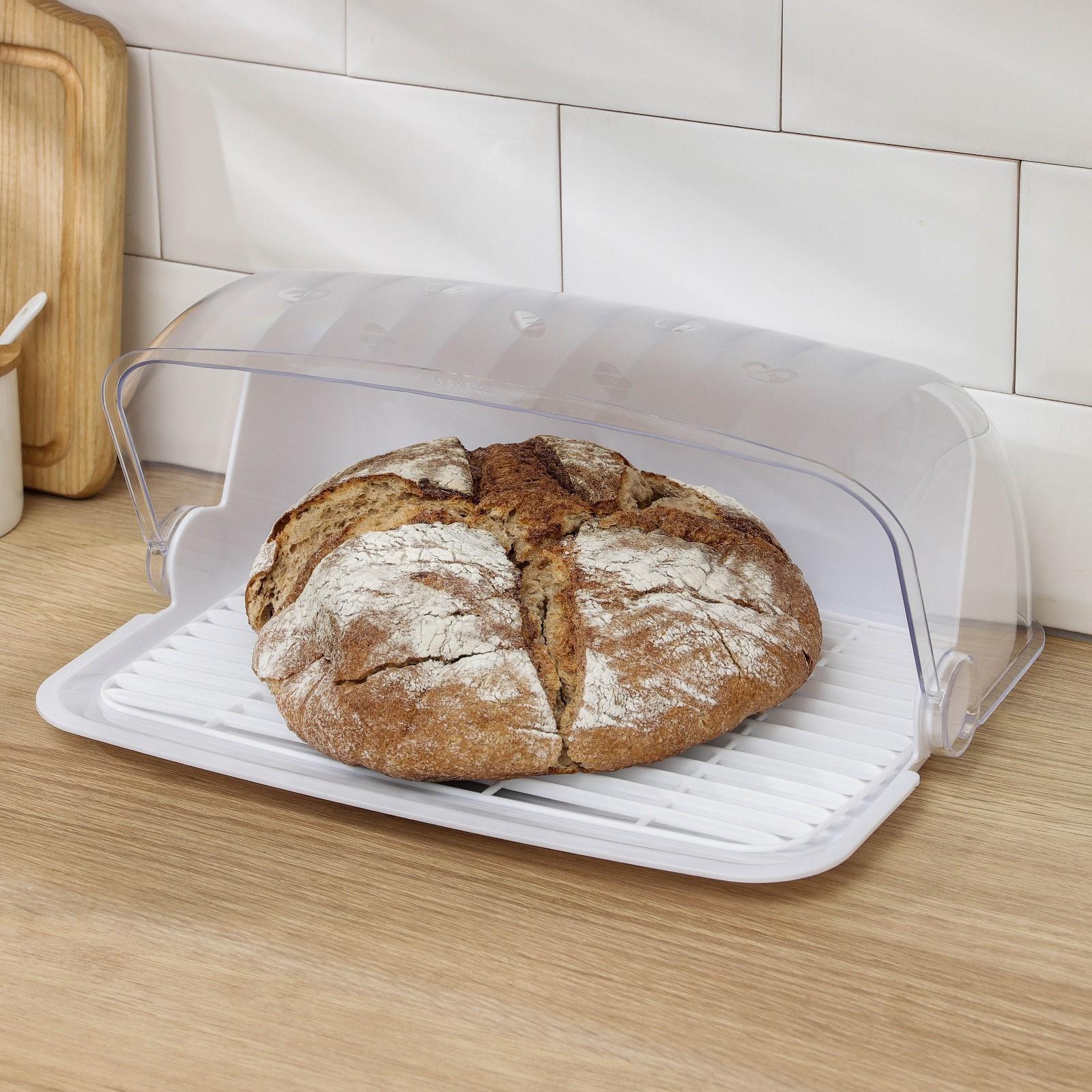 Хлебница изготовлена из пищевого белорусского пластика, в соответствии со всеми российскими стандартами качества. Внутри имеется специальный решетчатый поддон, что предотвращает налипание старых крошек на свежий хлеб и обеспечит достаточную вентиляцию.