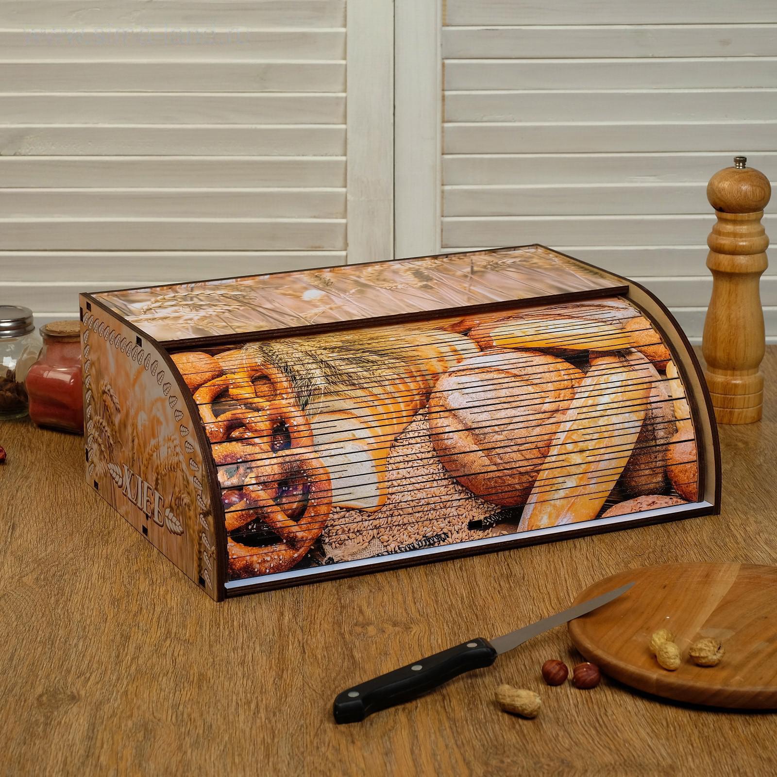 Хлебница деревянная "Приятного аппетита", цветная, 38х26х14 см