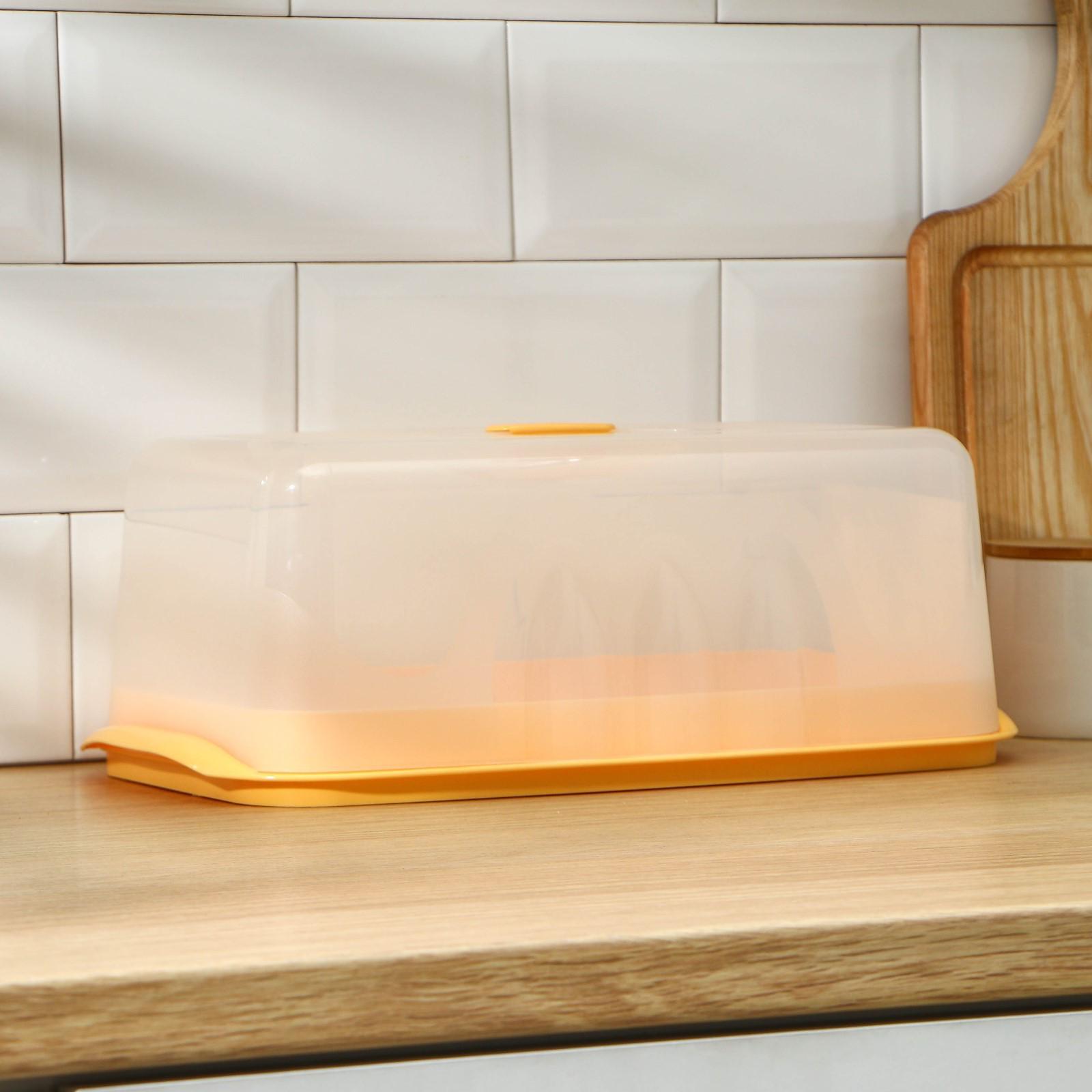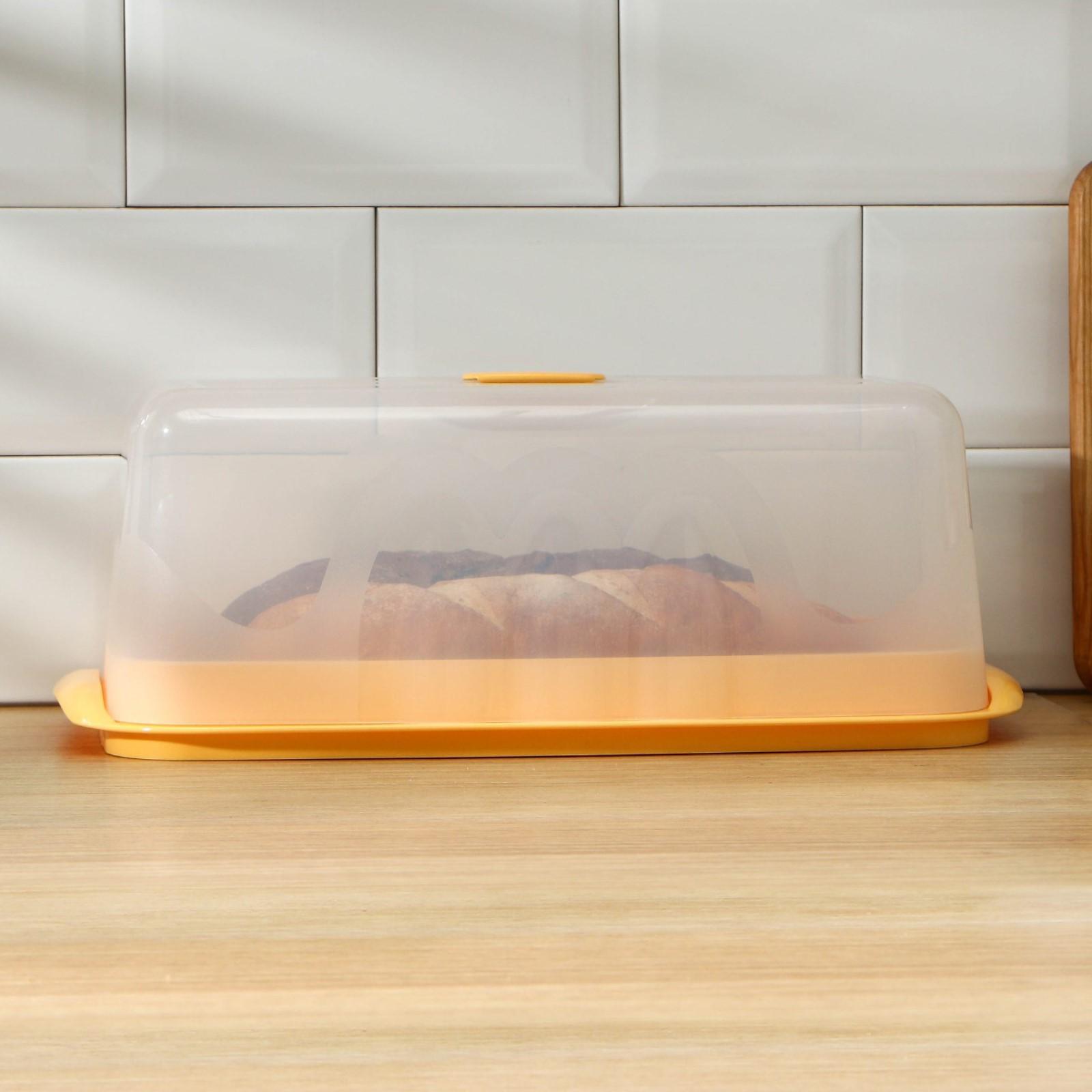 Хлебница с прозрачной крышкой, 36×22×13,5 см, цвет МИКС