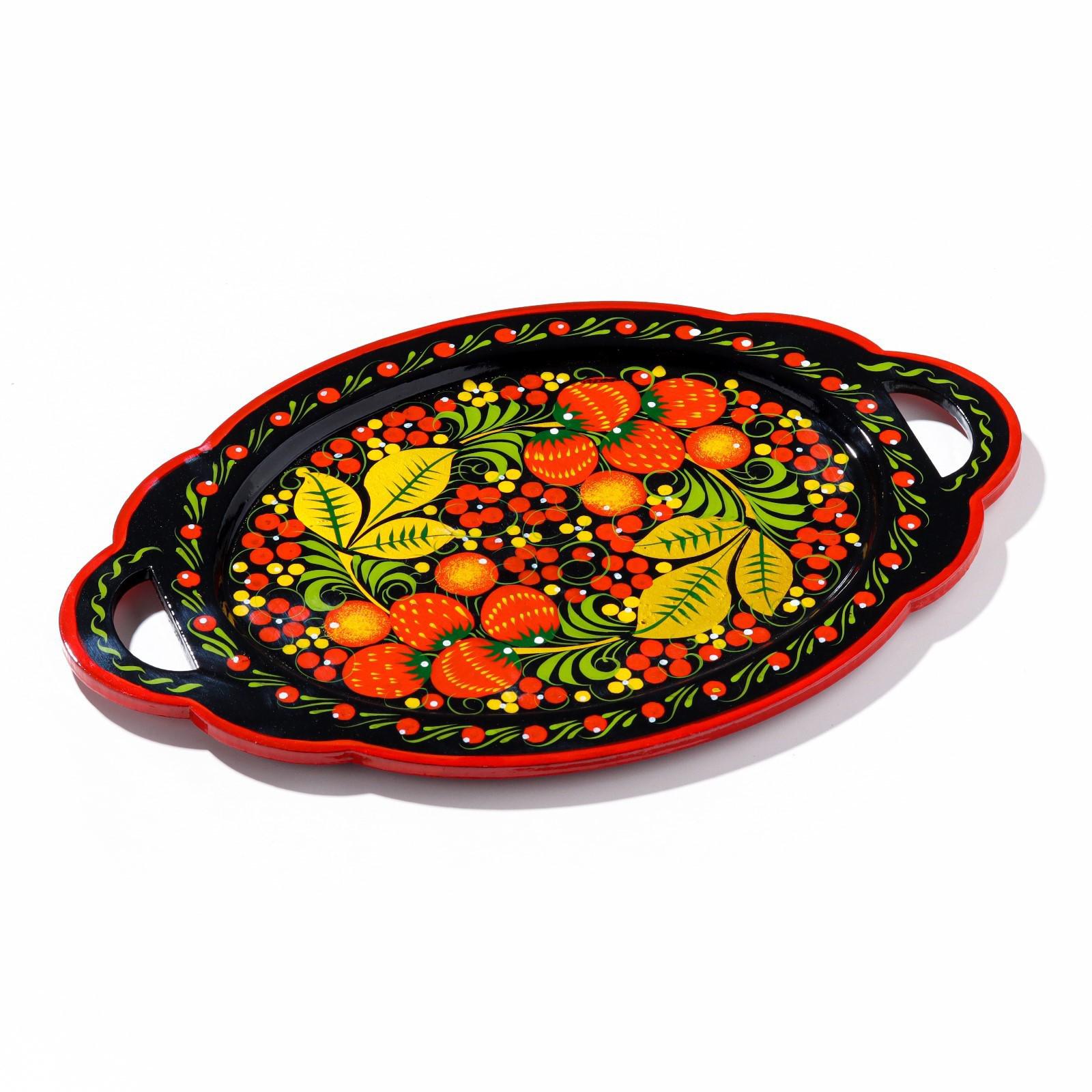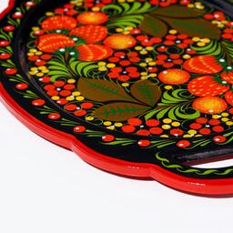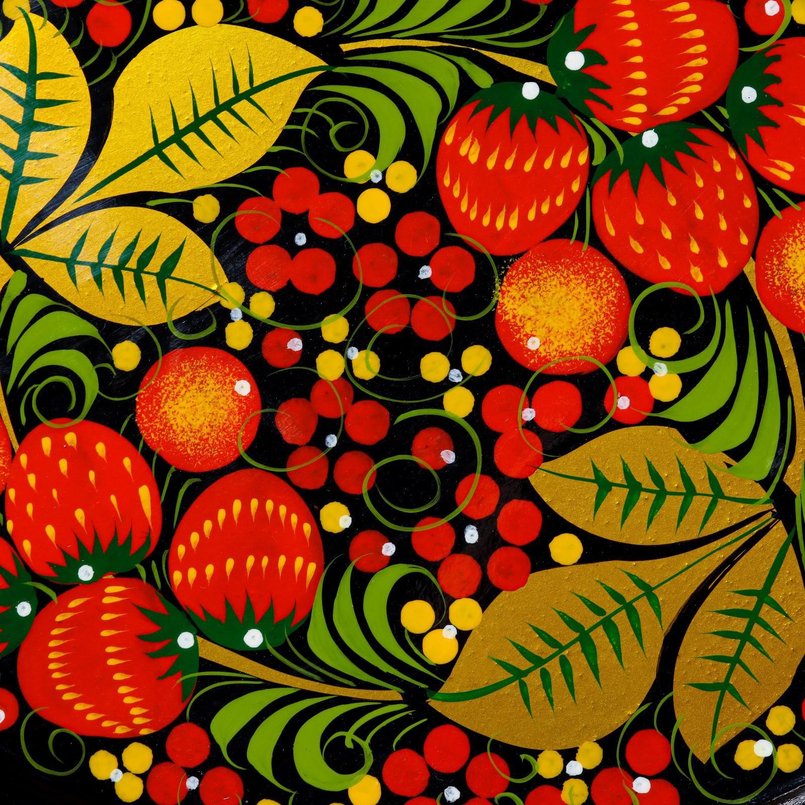 Традиционные элементы Хохломы — ягоды рябины и земляники, цветы и листья, птицы, рыбы и звери.