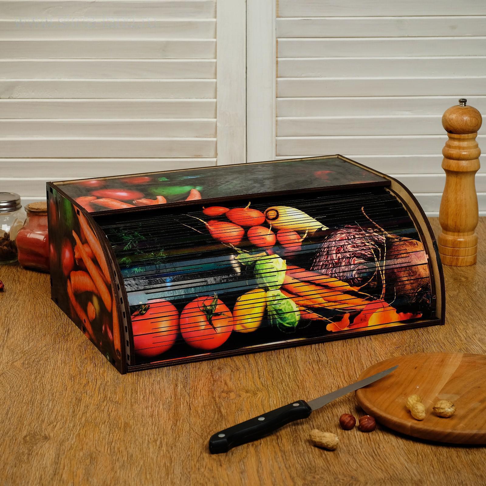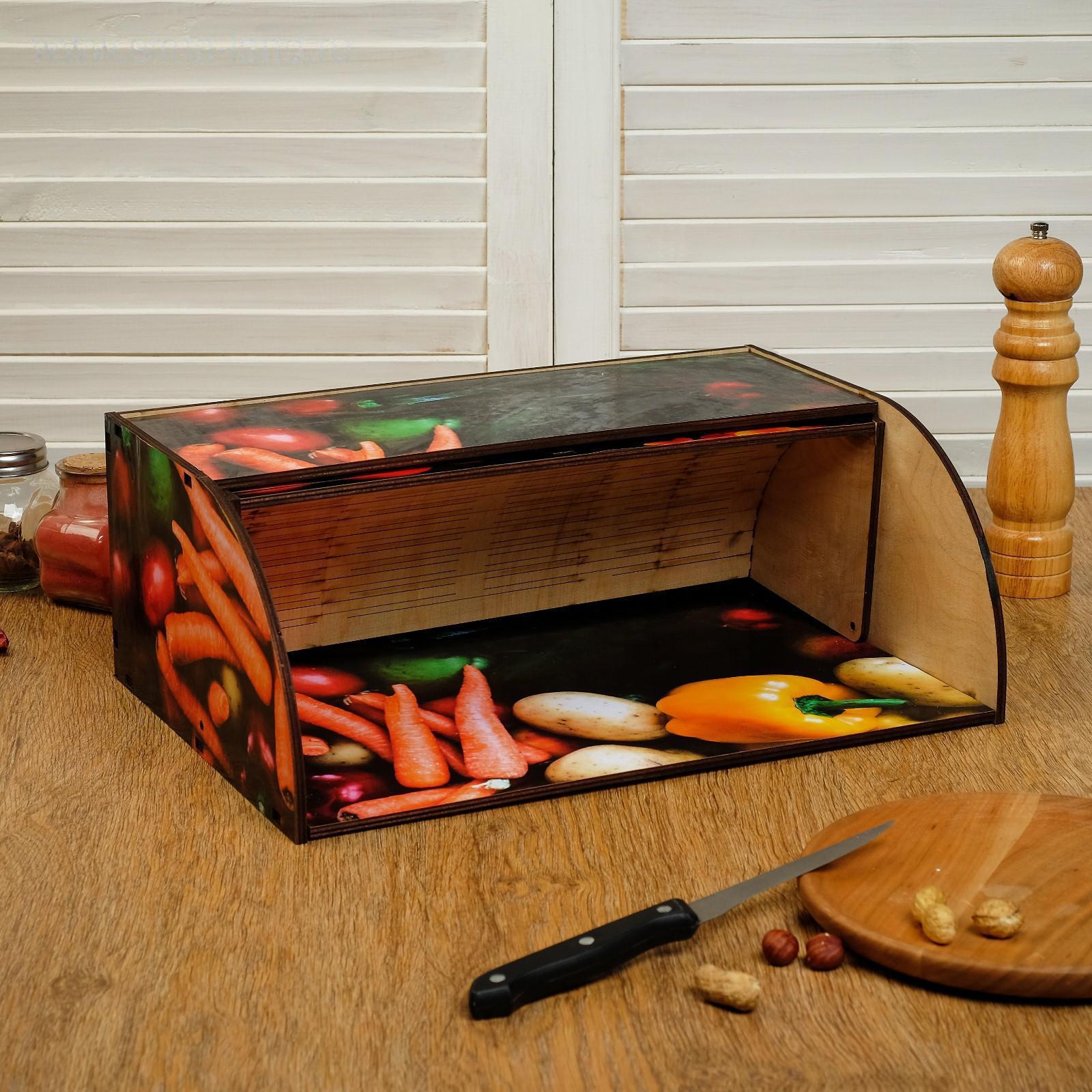 Хлебница деревянная "Овощной ящичек", цветная, 37х27х14 см