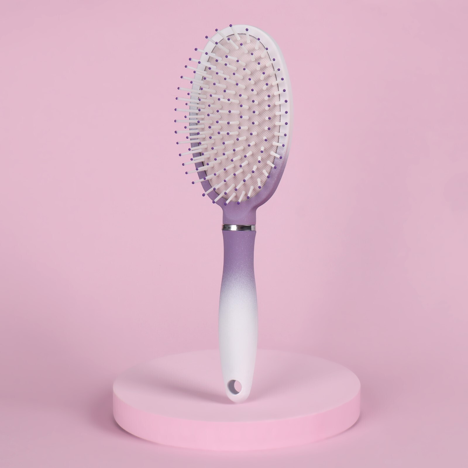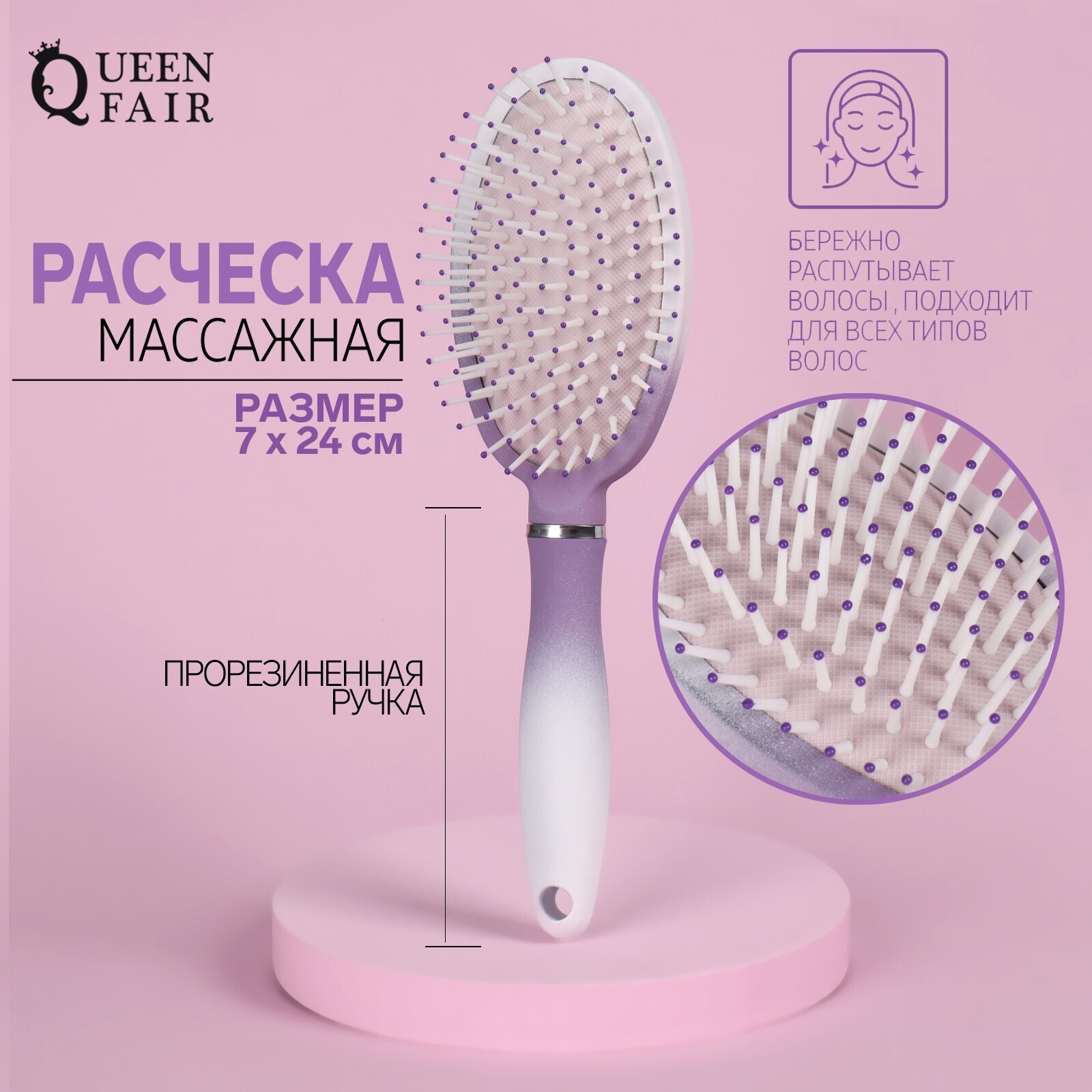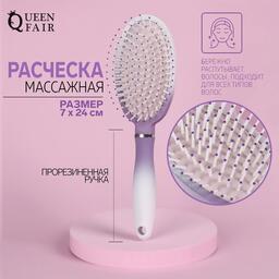 Расчёска массажная, прорезиненная ручка, 7 × 24 см, цвет белый/фиолетовый