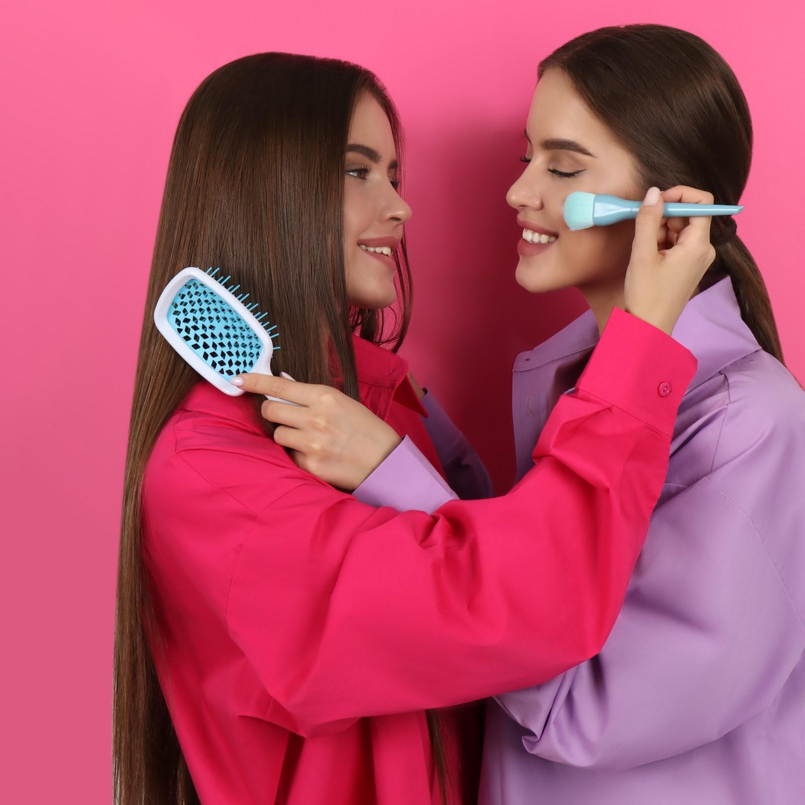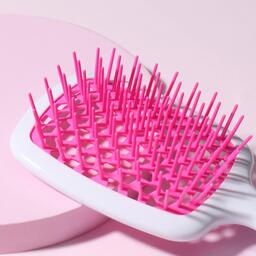 Массажная расческа обеспечивает аккуратный массаж кожи головы и улучшает микроциркуляцию. Зубцы с мягкими кончиками не вырывают волосы и не травмируют кожу головы. Аксессуар легко скользит даже по мокрым волосам и делает расчесывание более комфортным и приятным. Специальный корпус расчески пропускает воздух, что идеально подходит для укладки и позволяет ускорить сушку волос.