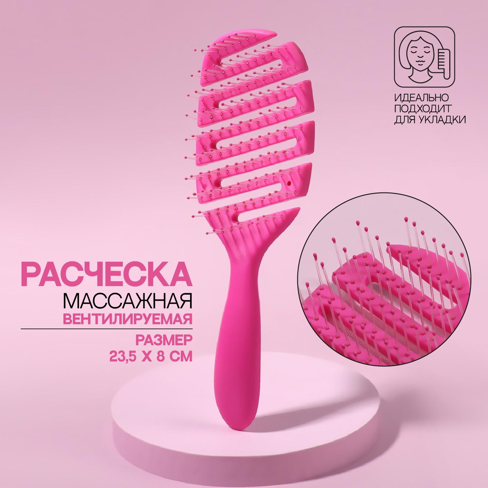 Расчёска массажная, вентилируемая, 8 × 23,5 см, цвет розовый