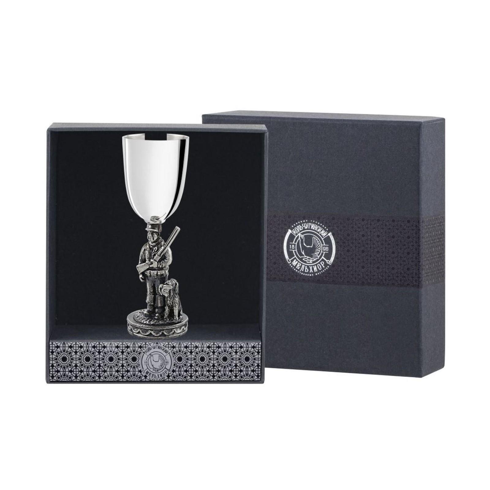 Рюмка «Охотник» посеребренная, полированная с чернением + футляр