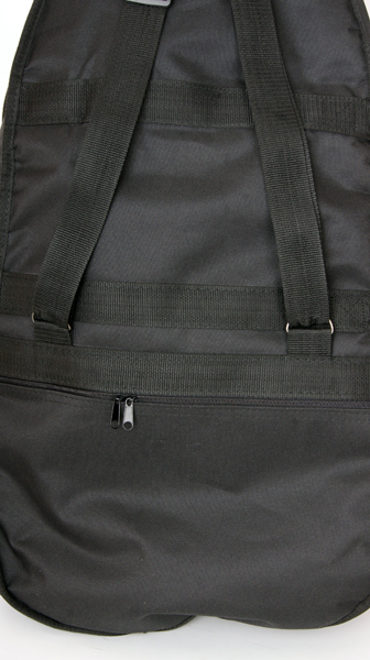 Две вшитые лямки. Ручка для переноски. Открывается по всей длине.