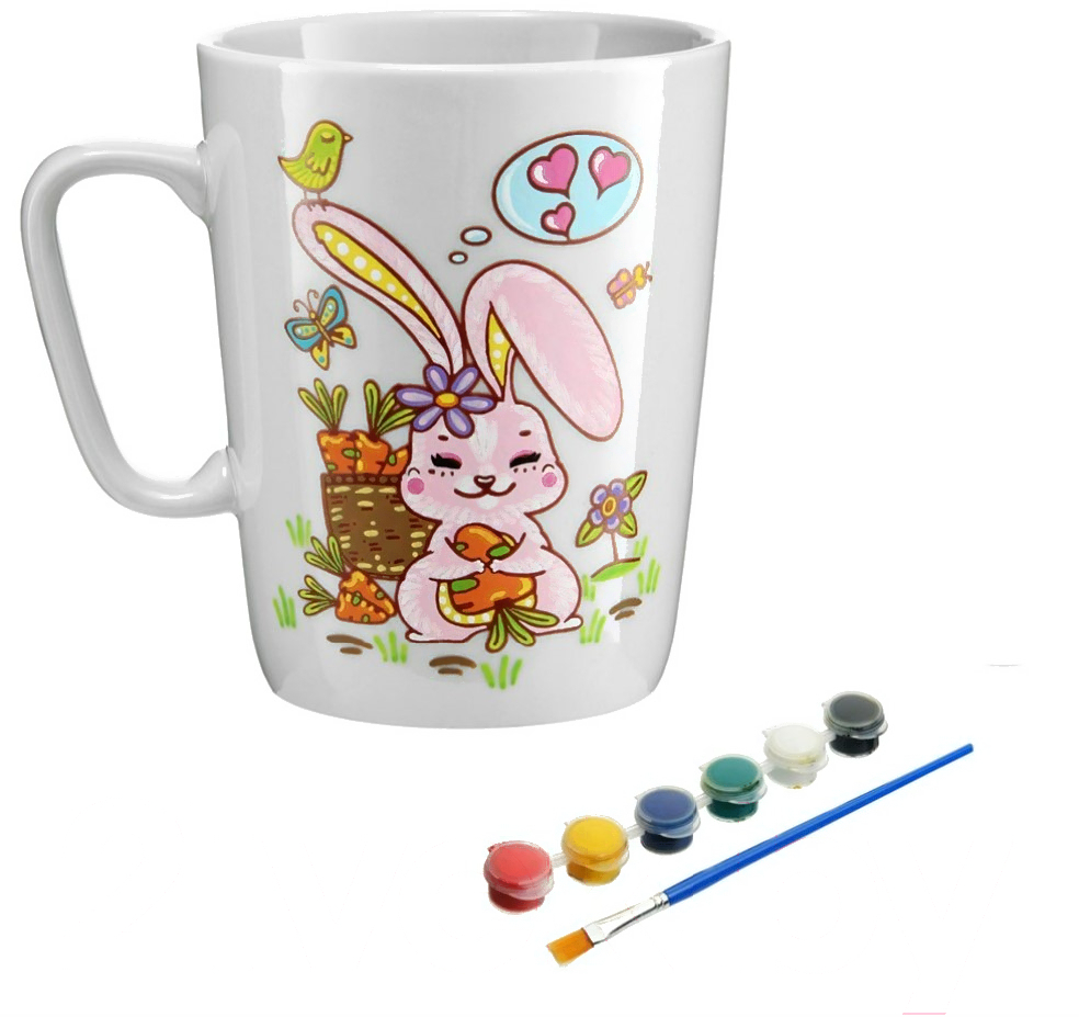 - Комплектация набора кружка из фарфора, краски, кисточка