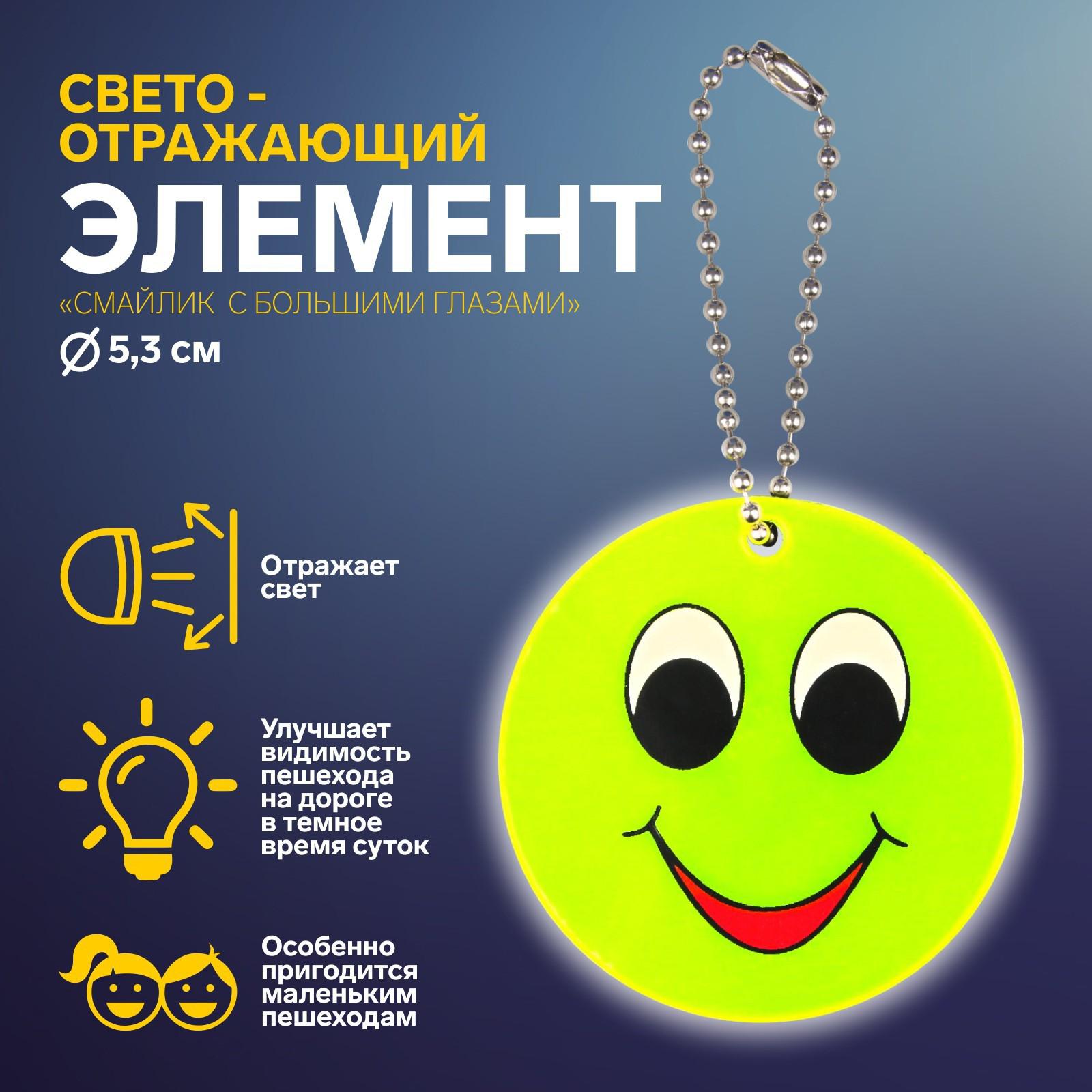 Светоотражающий элемент «Смайлик с большими глазами», двусторонний, d = 5,3 см, цвет жёлтый