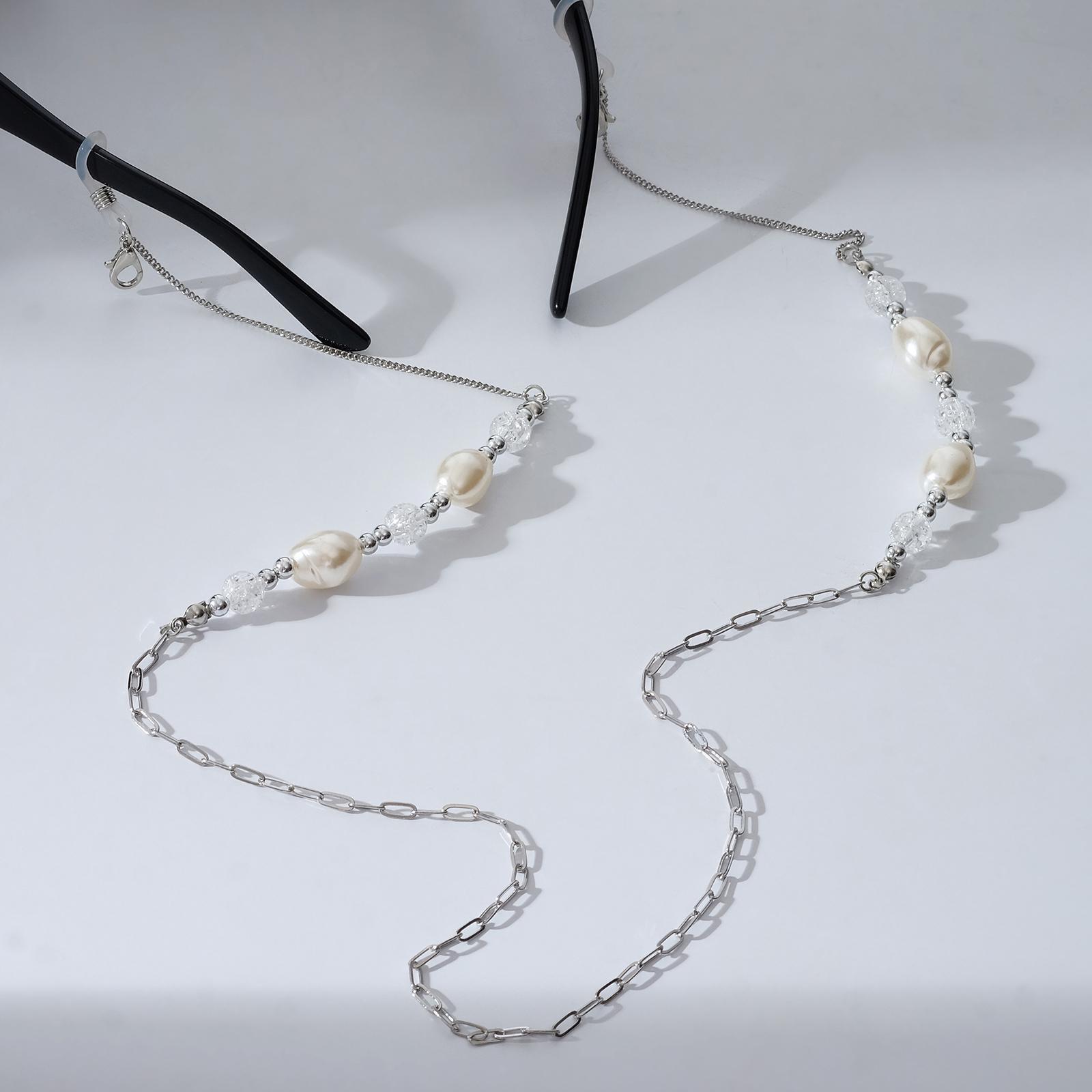 Цепочка для очков "Жемчужные бусины" майорка, d=1, цвет белый в серебре, 70 см