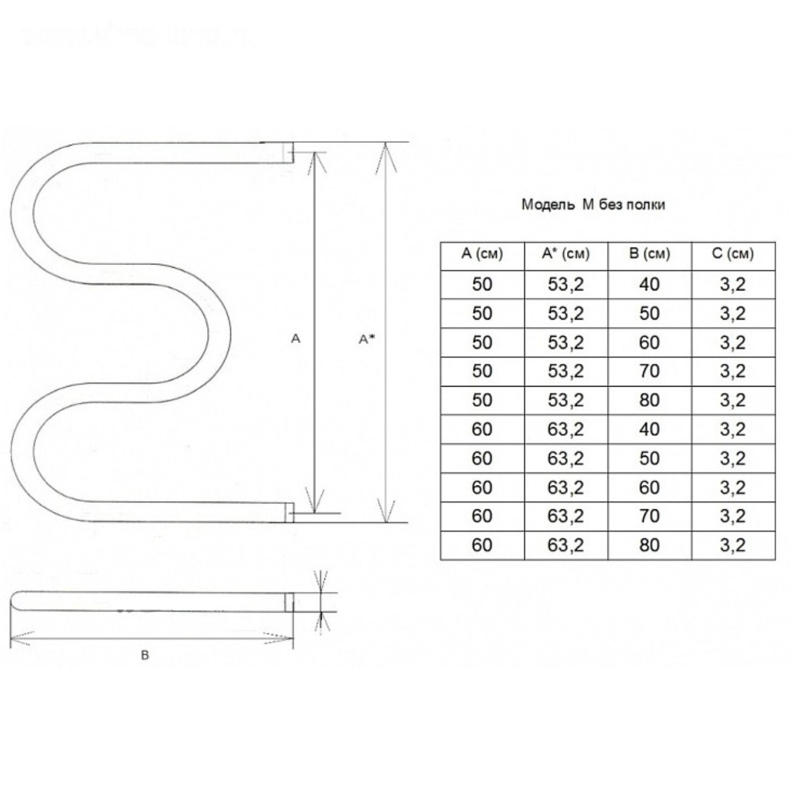 Полотенцесушитель «ДВИН», водяной, M-образный, 60/70, 1″, без полки