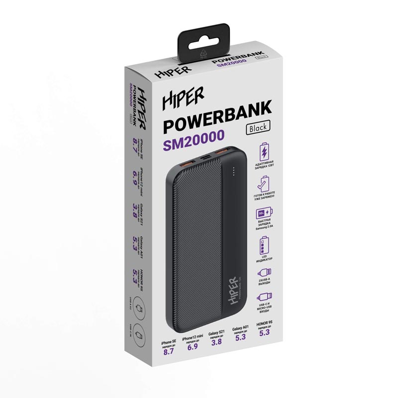 Портативный аккумулятор Power Bank Hiper Power SM чёрный, SM20000 BLACK