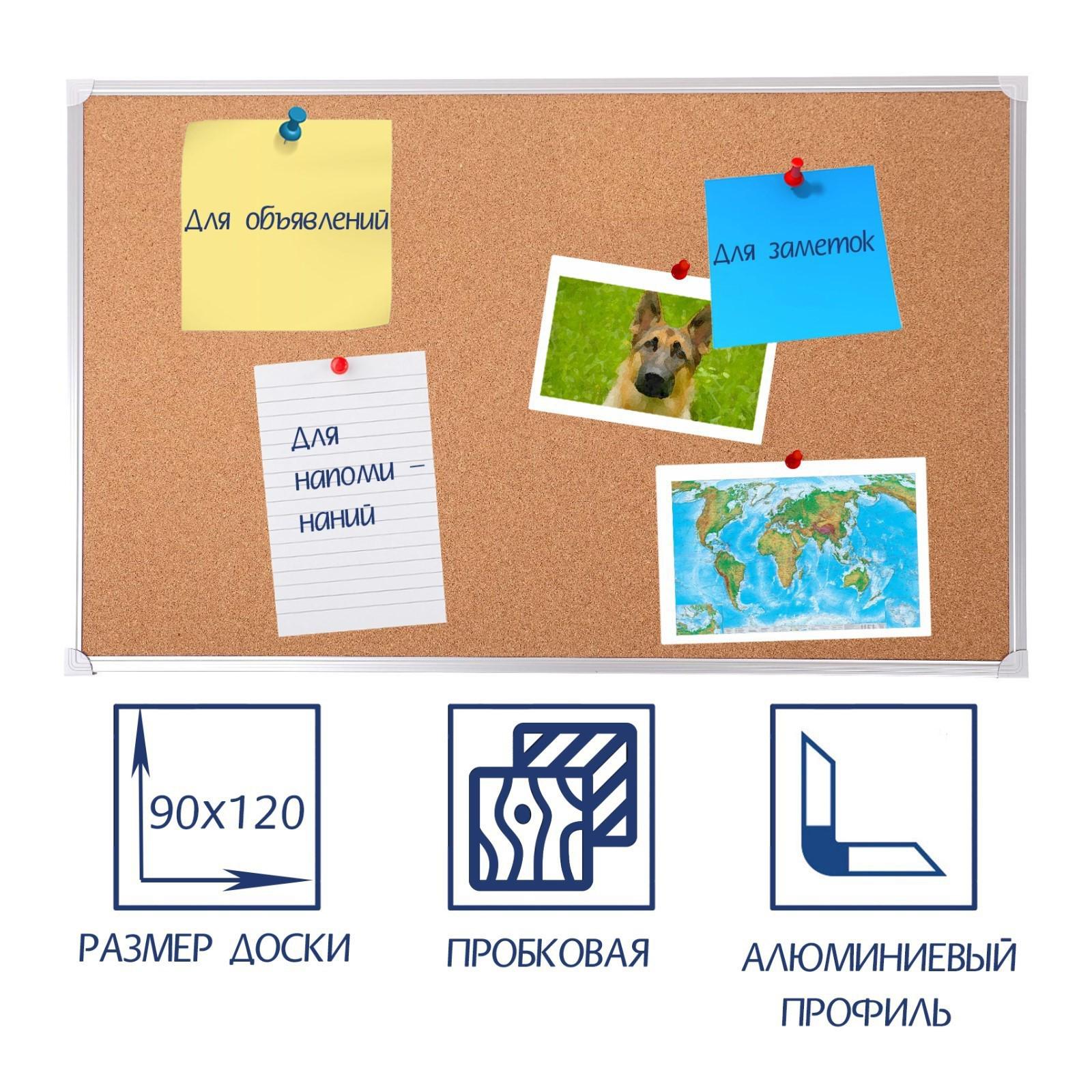 Доска пробковая 90х120 см, Calligrata СТАНДАРТ, в алюминиевой рамке