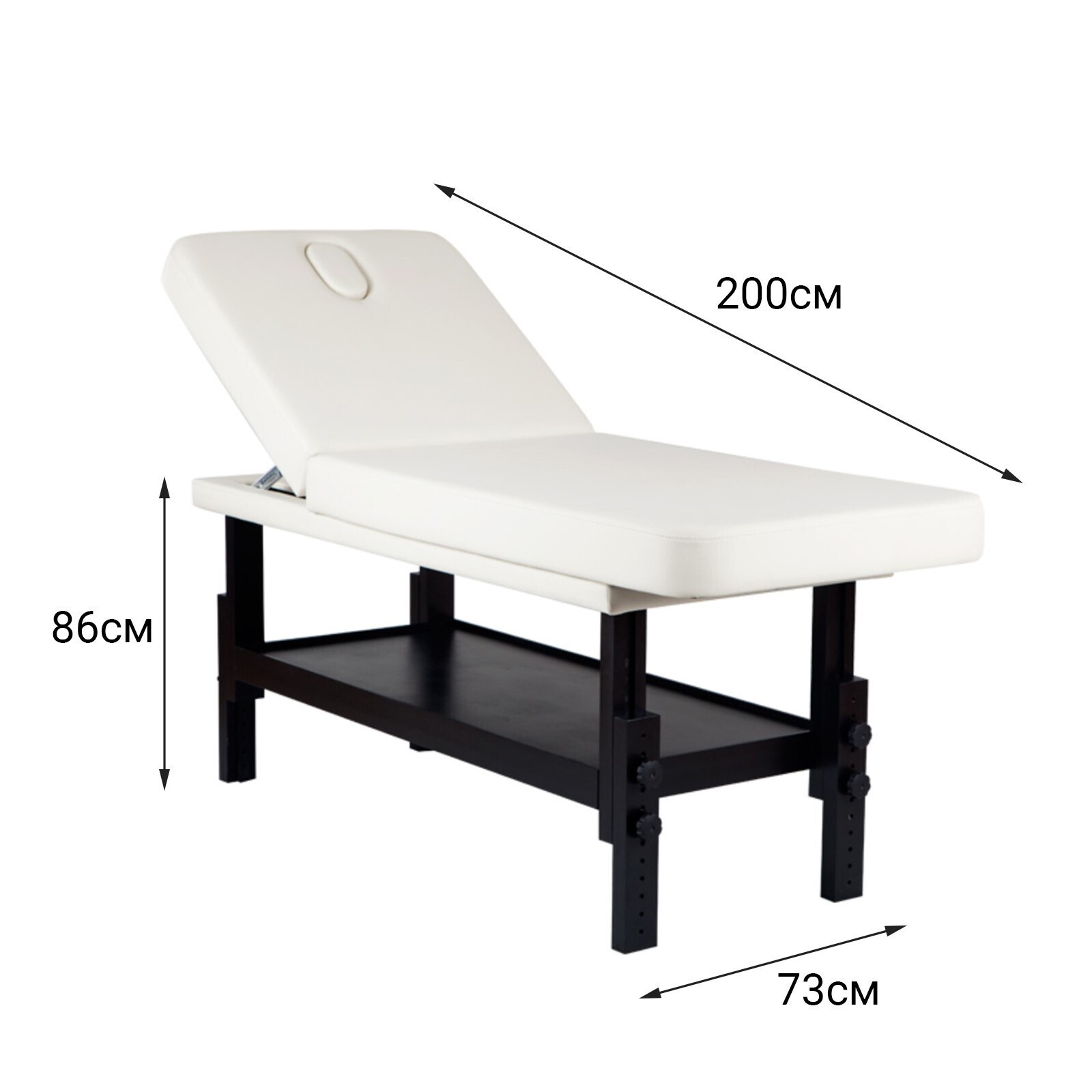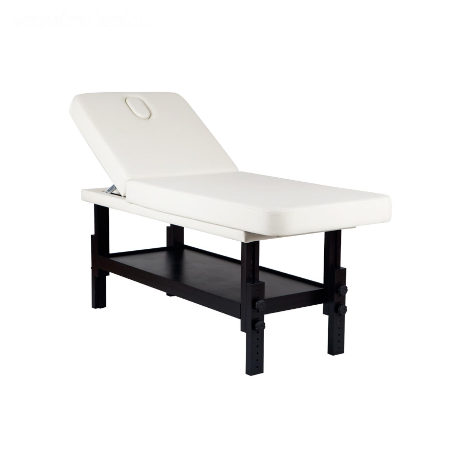 Массажная СПА-кушетка VISPA имеет механические регулировки угла высоты и угла наклона спинки а также, удобную полку для аксессуаров. Основание выполнено из массива бука.
