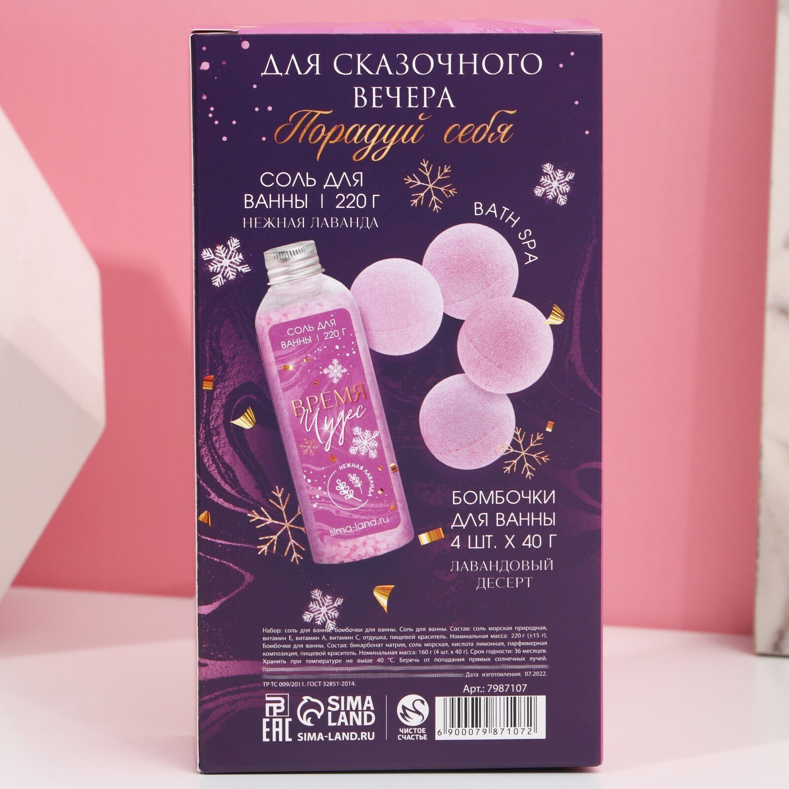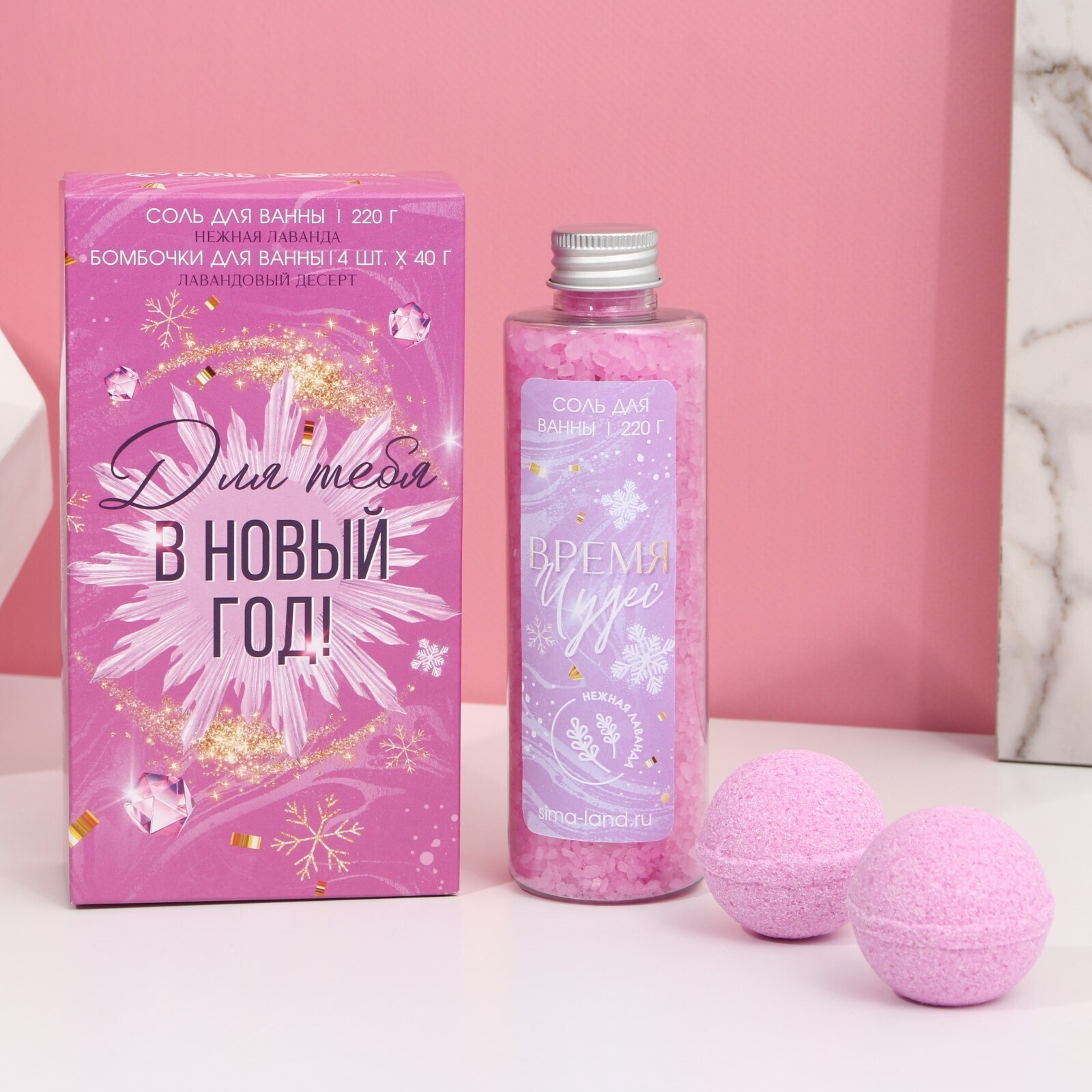Набор "Для тебя в Новый год!": соль для ванны 220 г, аромат нежная лаванда, бомбочки для ванны 4 шт по 40 г, аромат лавандовый десерт