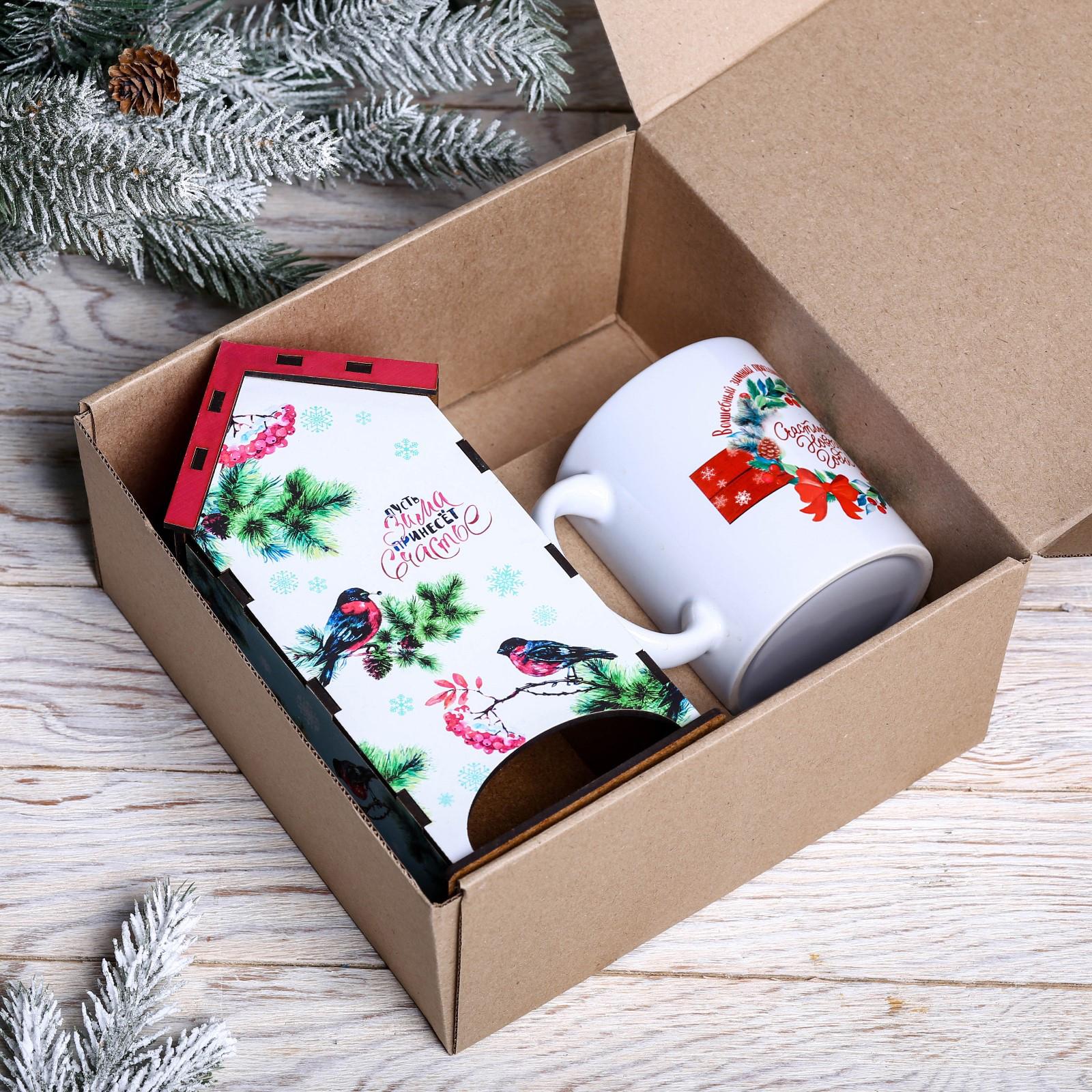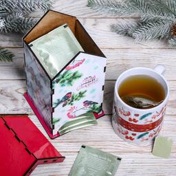 Подарочный новогодний набор, в который входит чайный домик и кружка, выполнен в эксклюзивном новогоднем дизайне. Такой новогодний подарок понравится любителям чая! Чайный домик – это необычная упаковка для хранения чая. Он поможет навести порядок на обеденном столе, а также станет его яркой деталью. Чайные пакетики закладываются сверху внутрь домика и вынимаются снизу. Органайзер для чая выполнен из материала ХДФ, а красочность рисунка задаётся благодаря оклейке полиграфией. Кружка также имеет красочный новогодний дизайн, рисунок нанесен с помощью сублимации. Керамическую кружку можно спокойно мыть в посудомоечной машине и грет в СВЧ-печи. Такой новогодний сувенир отлично подойдет для подарка родным и друзьям!