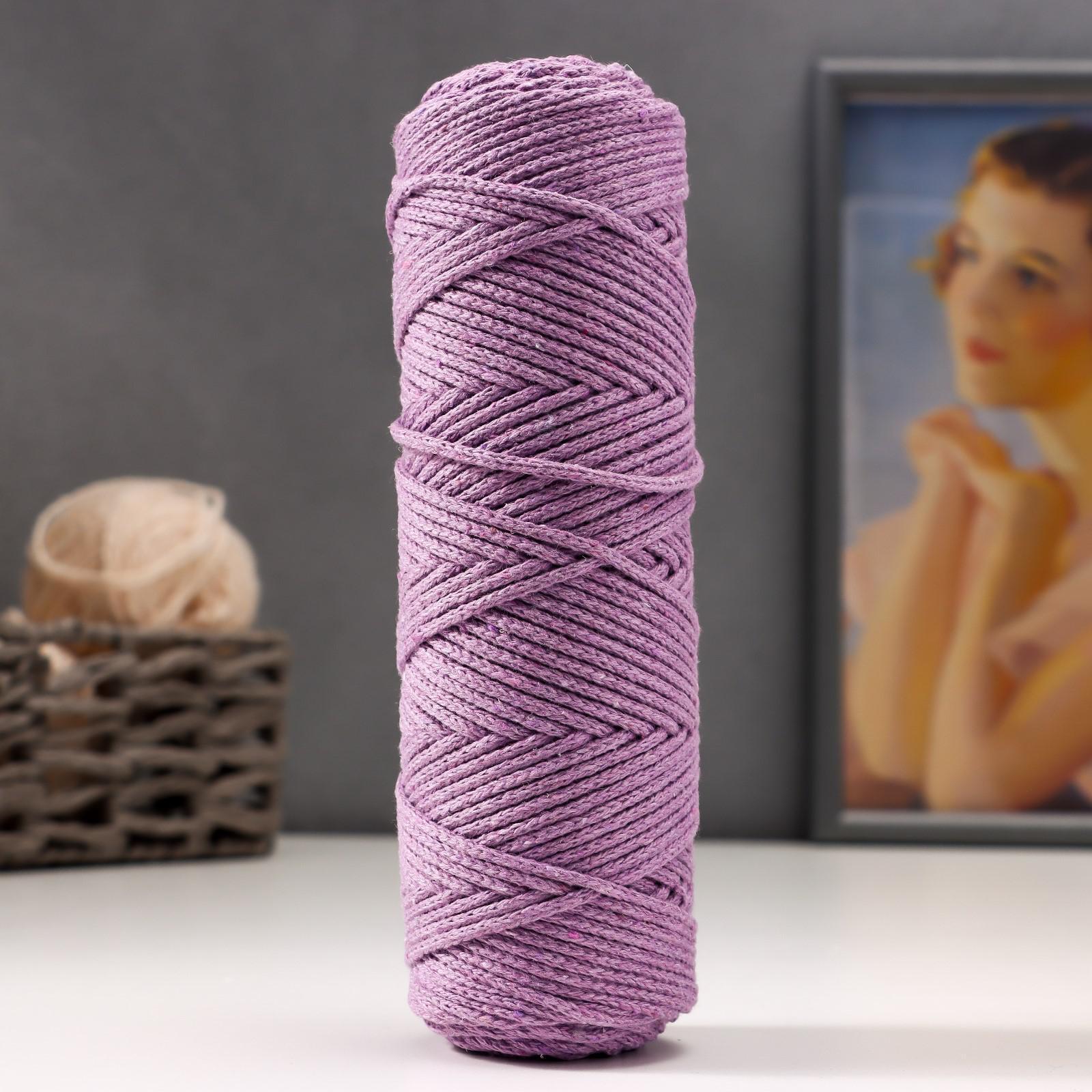 Шнур для вязания без сердечника 100% хлопок, ширина 3мм 100м/200гр (сиреневый)