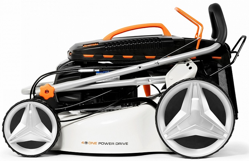 Газонокосилка работает на мощном 4-тактном двигателе объемом 140 куб. см на 4,8 л.с. Он легко запускается, экономно расходует бензин и масло, показывает высокую производительность, позволяющую справляться даже с переросшей травой. Его работа полностью безопасна за счет наличия защиты от перегрева и перегрузок и системы аварийного отключения. Все рабочие элементы газонокосилки надежно защищены от механических повреждений.