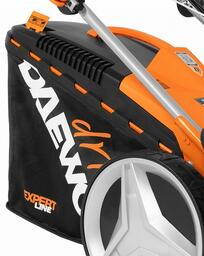 Газонокосилка бензиновая Daewoo DLM 5500SVRB работает в режимах кошения, сбор в травосборник, боковой выброс и мульчирование. Режущая дека, как и корпус, сделана из высокопрочной стали с защитой от коррозии. В комплекте два ножа, куда входит универсальный и турбонож с острой заточкой. Трава собирается в большой травосборник объемом 70 литров. Он комбинированный, где низ- мягкий тканевой, а вверх- твердый пластик. Благодаря индикатору можно контролировать его заполнение, а также он легко опорожняется и чистится. Для очищения деки после работы предусмотрен штуцер, через который подключают водопроводный кран.