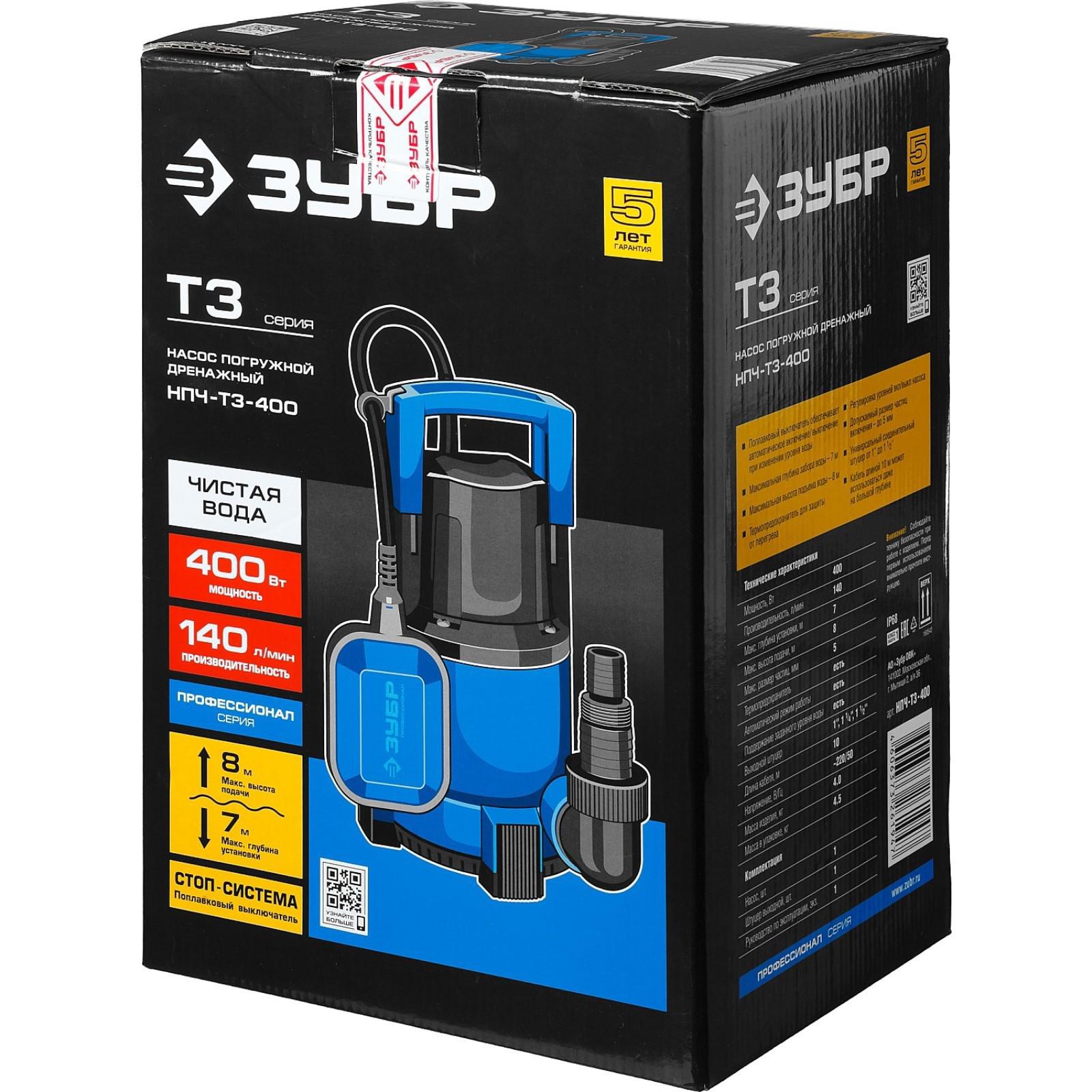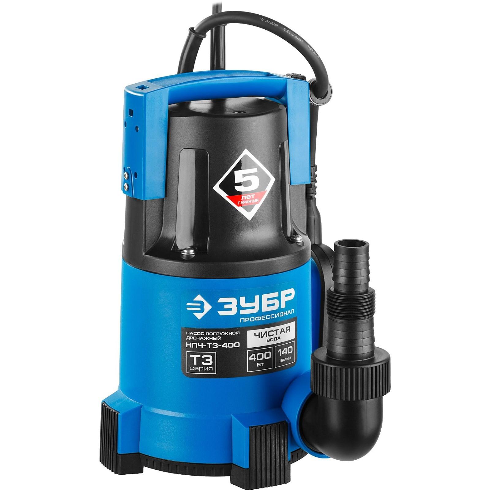 Насос дренажный "ЗУБР" НПЧ-Т3-400, 400 Вт, 140 л/мин, напор 8 м, уровень откачки до 5 мм