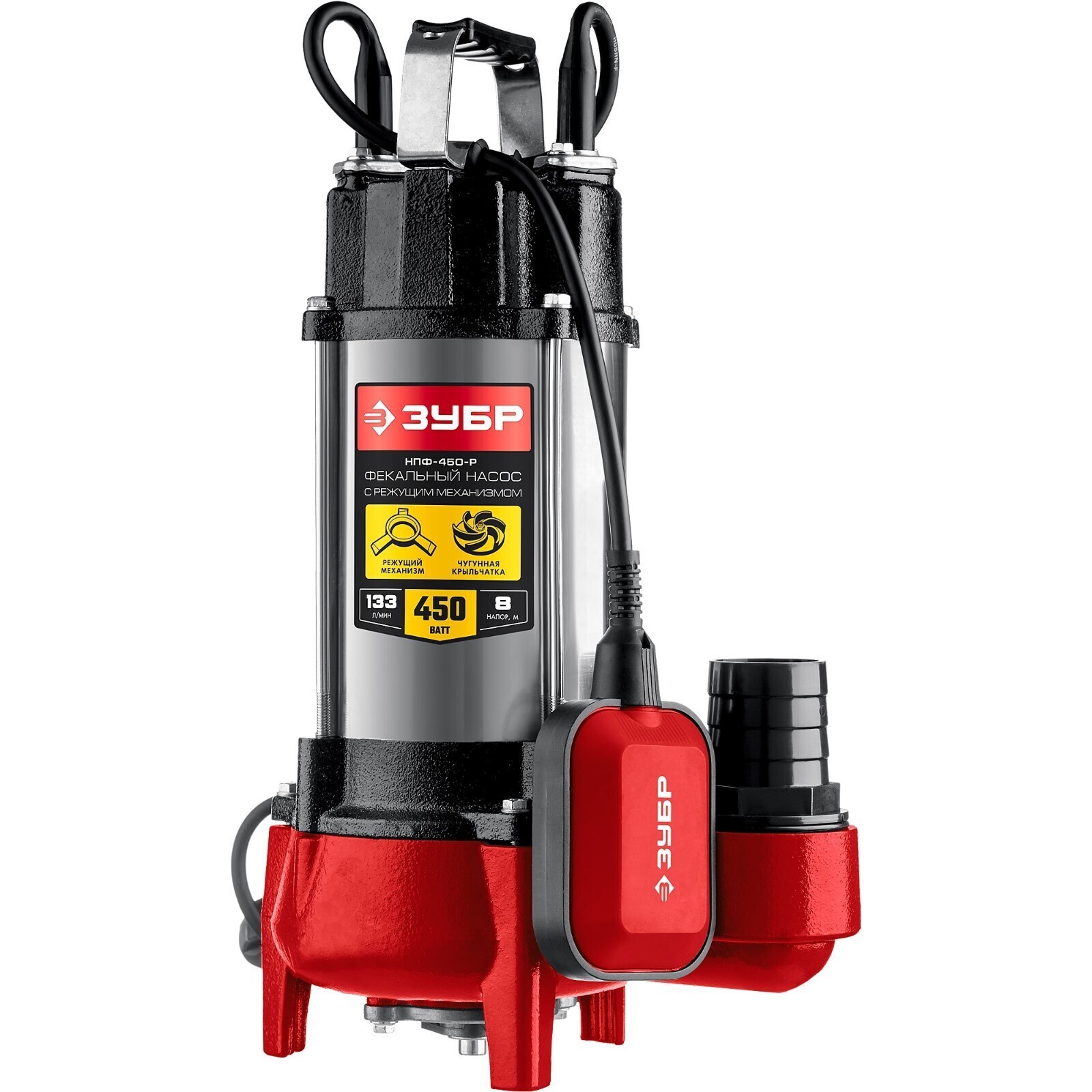 Насос фекальный "ЗУБР" НПФ-450-Р, 450 Вт, 133 л/мин, напор 8 м, с режущим механизмом