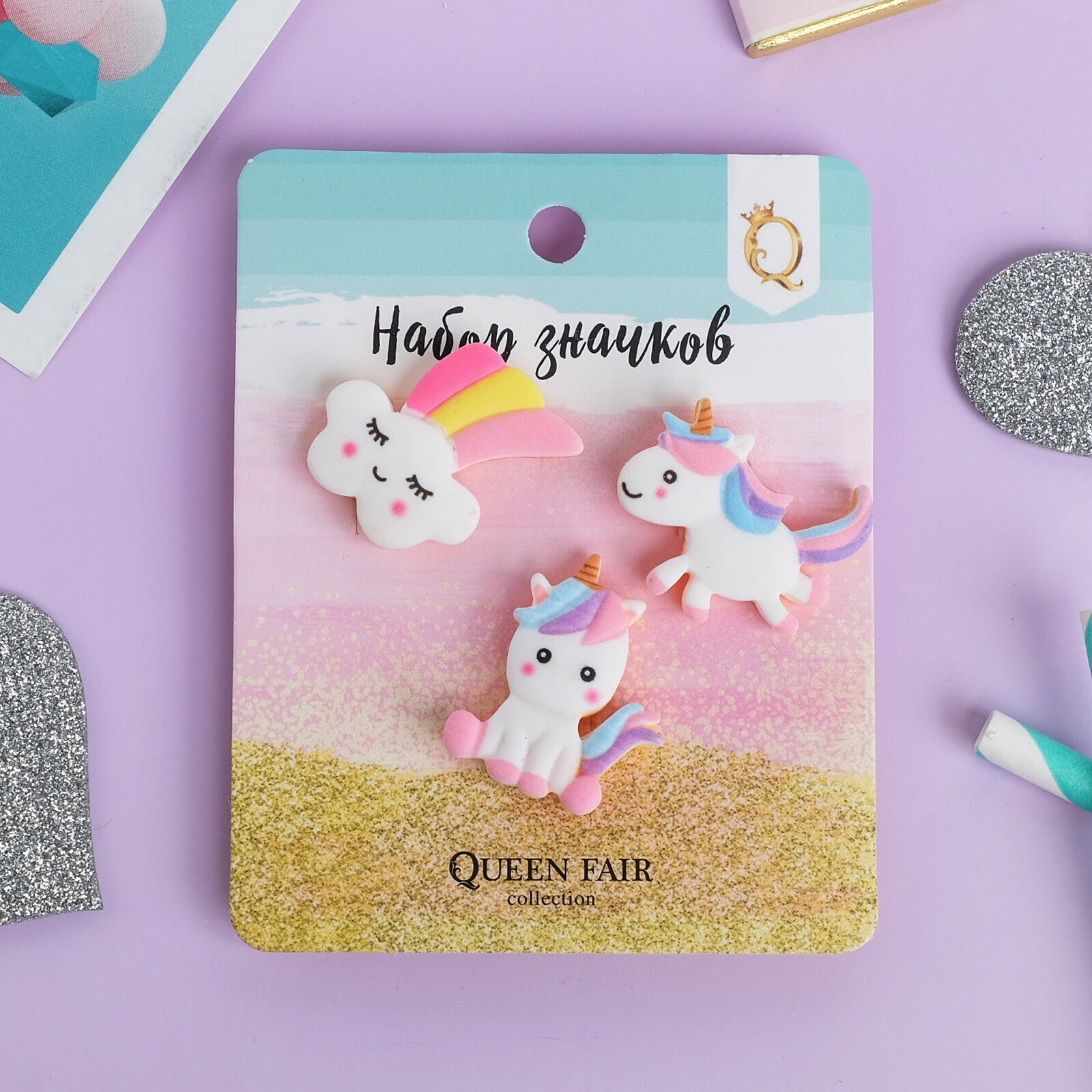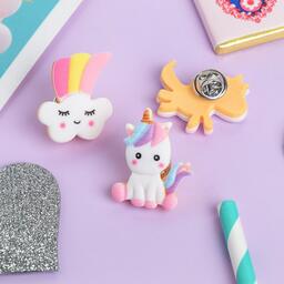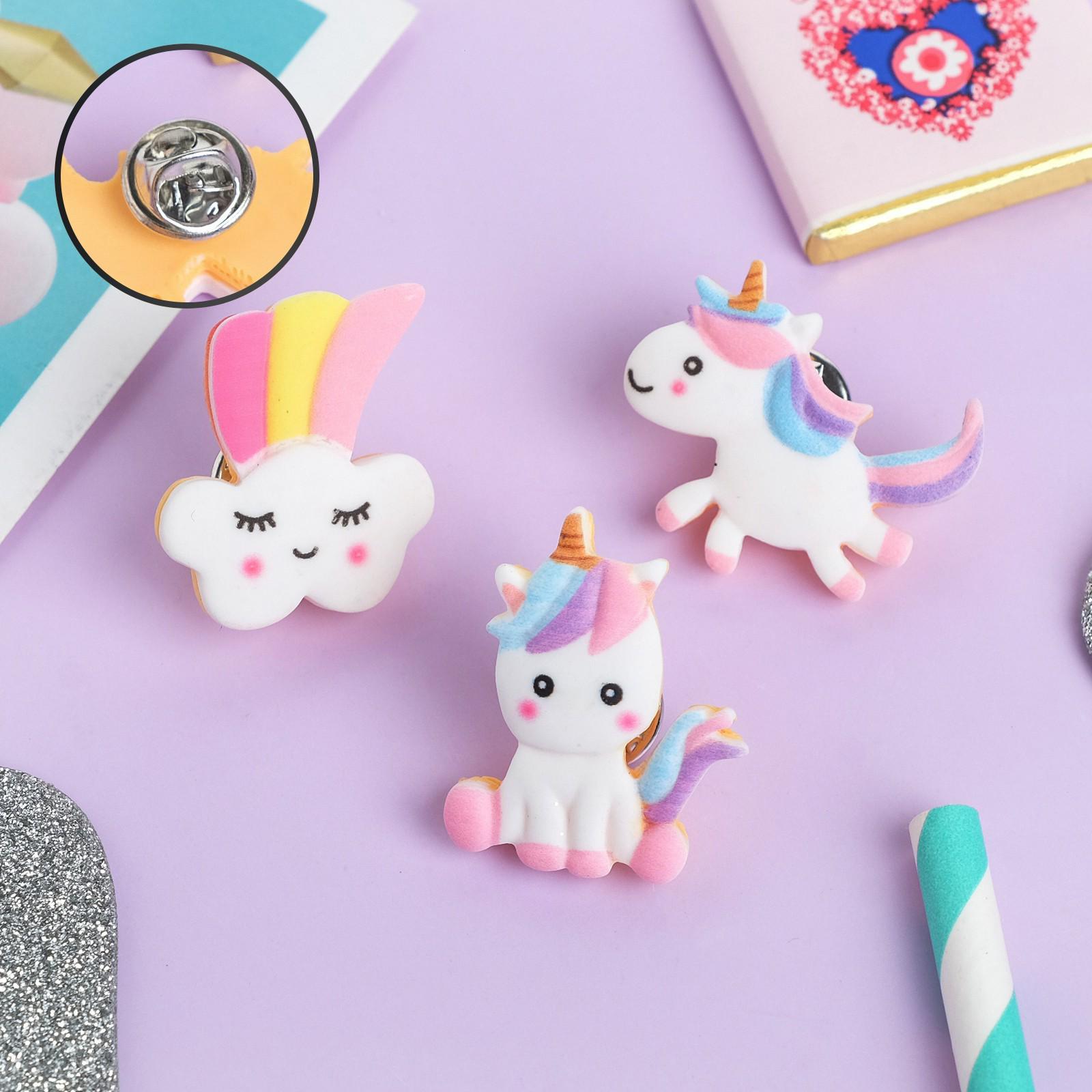 Набор значков (3шт) "Единороги" маленькие, форма МИКС, цветные