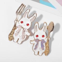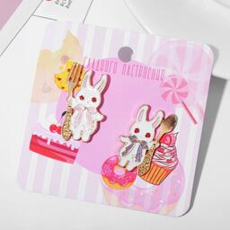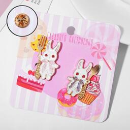 Набор значков (2шт) "Зайчики", цветной в золоте