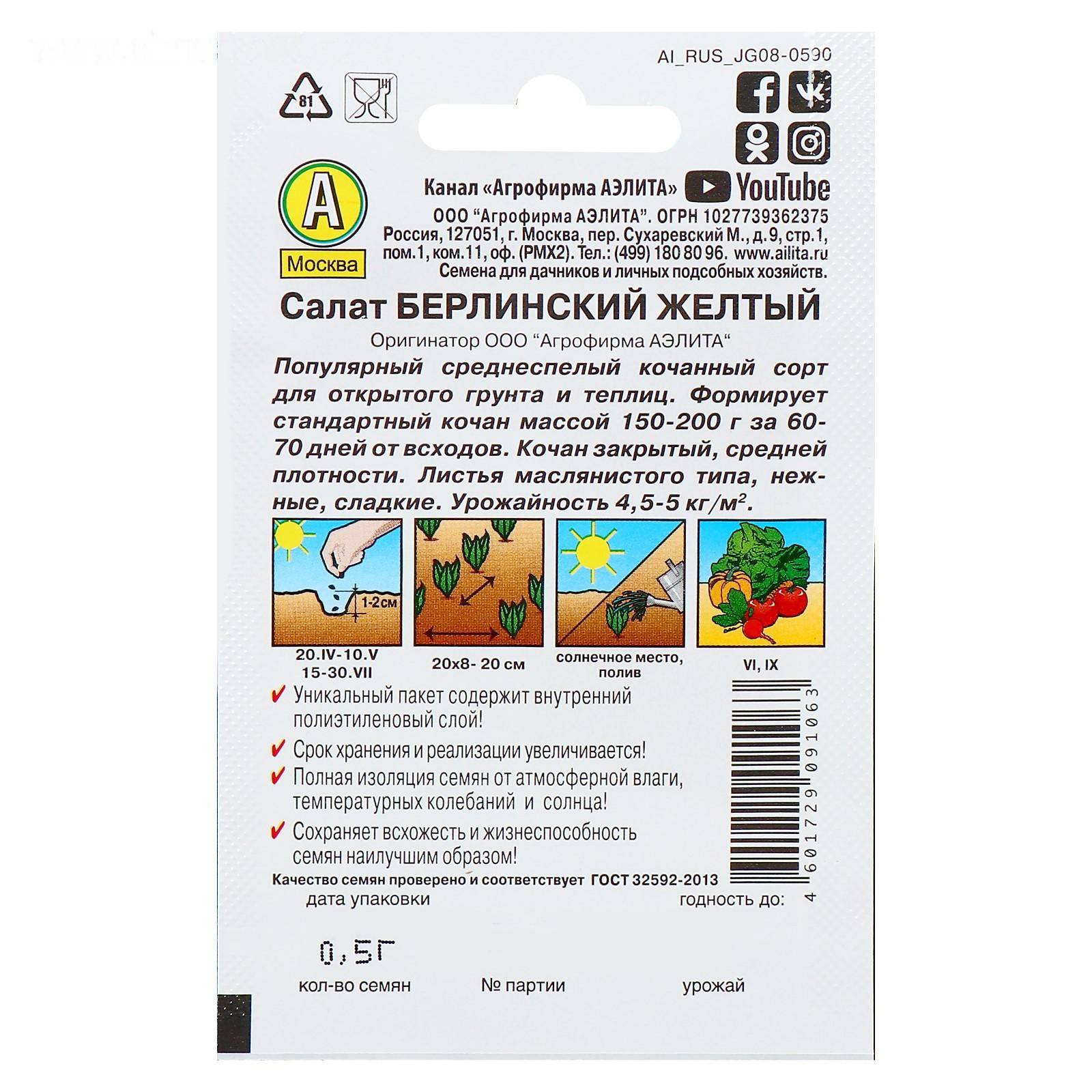 Семена Салат Берлинский желтый кочанный "Лидер", 0,5 г ,