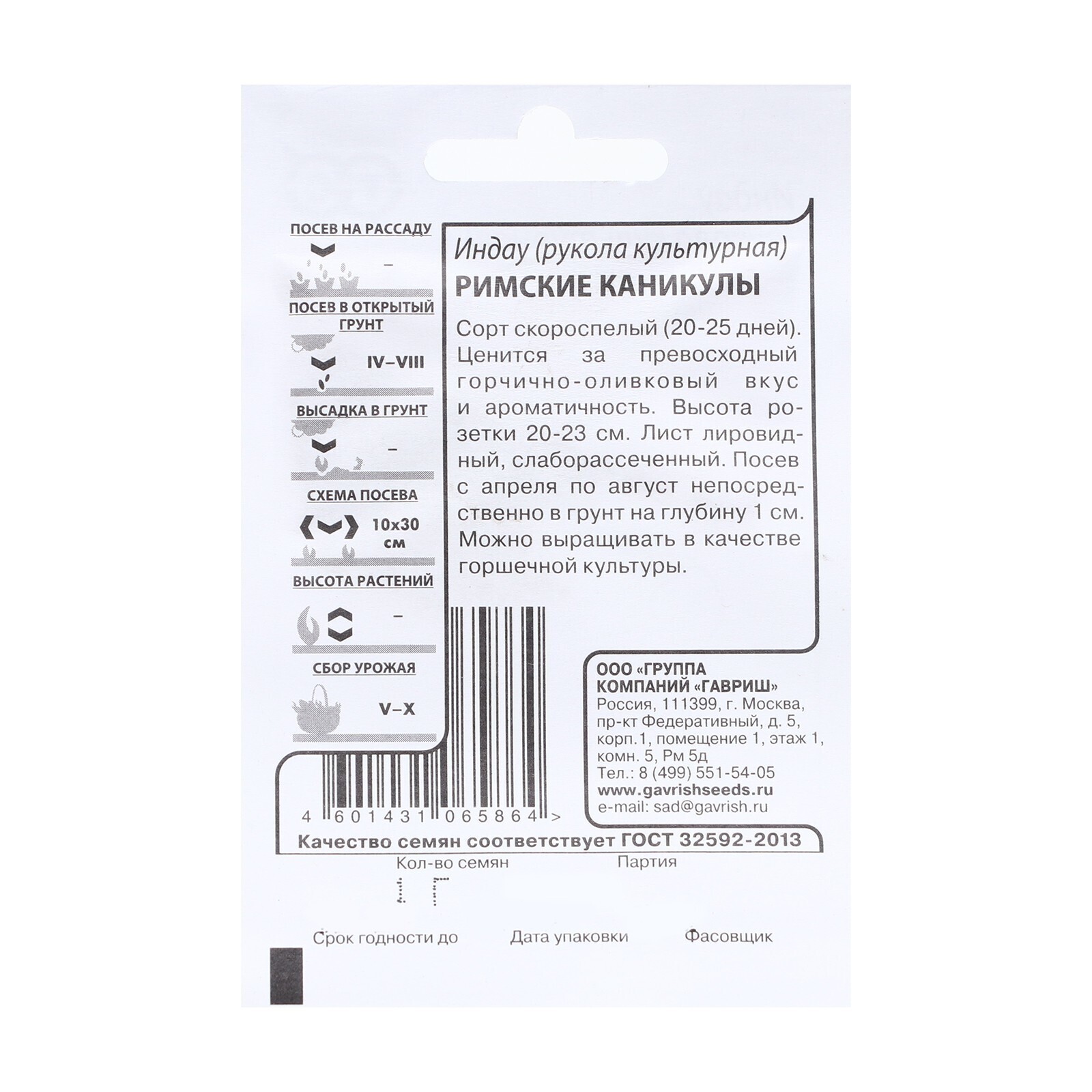 Семена Индау Римские каникулы (рукола) 1,0 г б/п с евроотв.