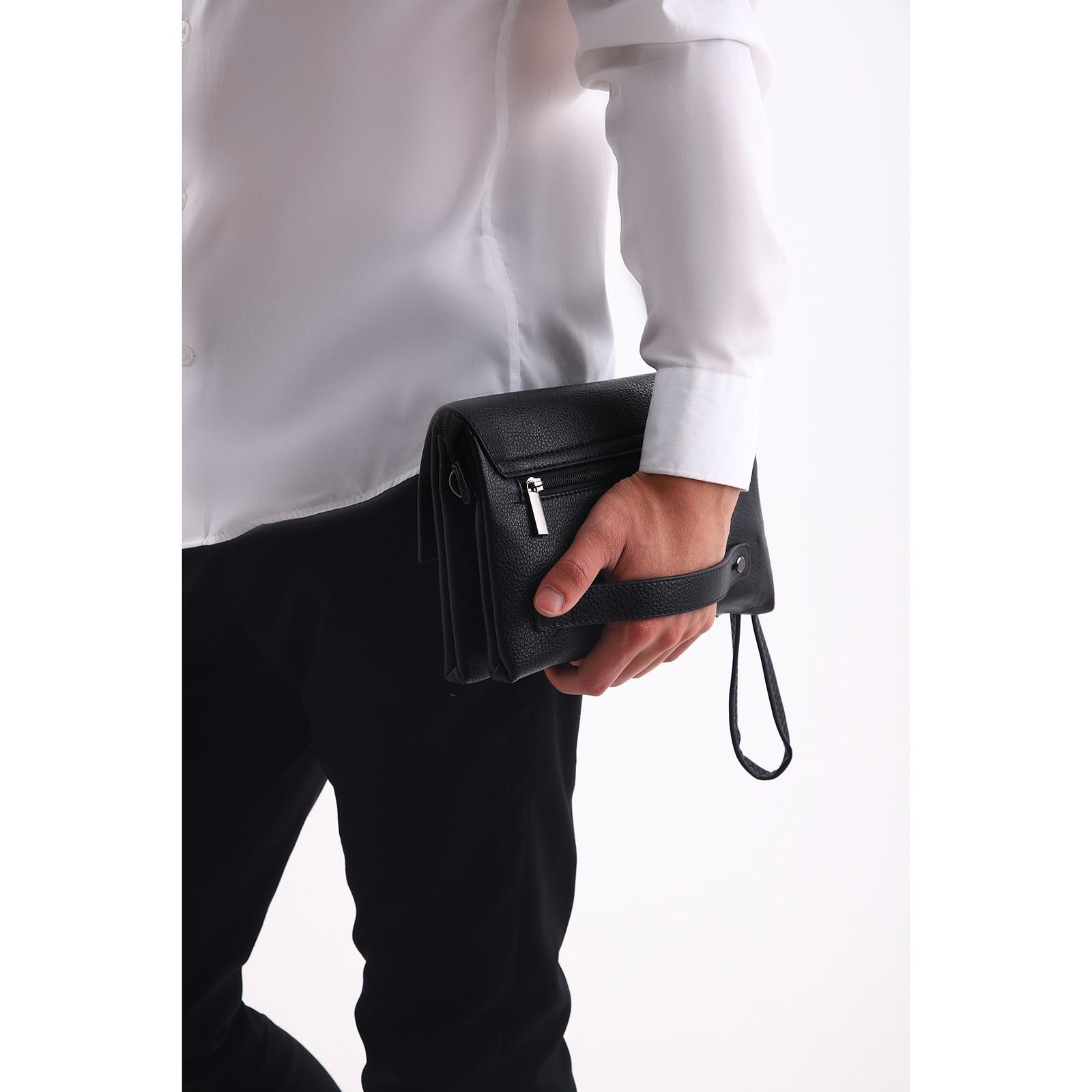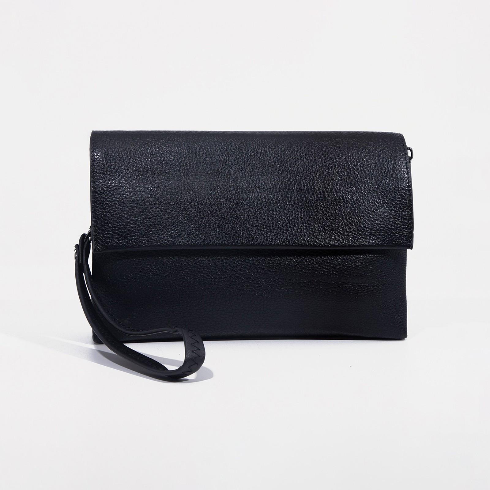 Клатч, 3 отдела на молнии, длинная стропа, ремешок на запястье, цвет чёрный