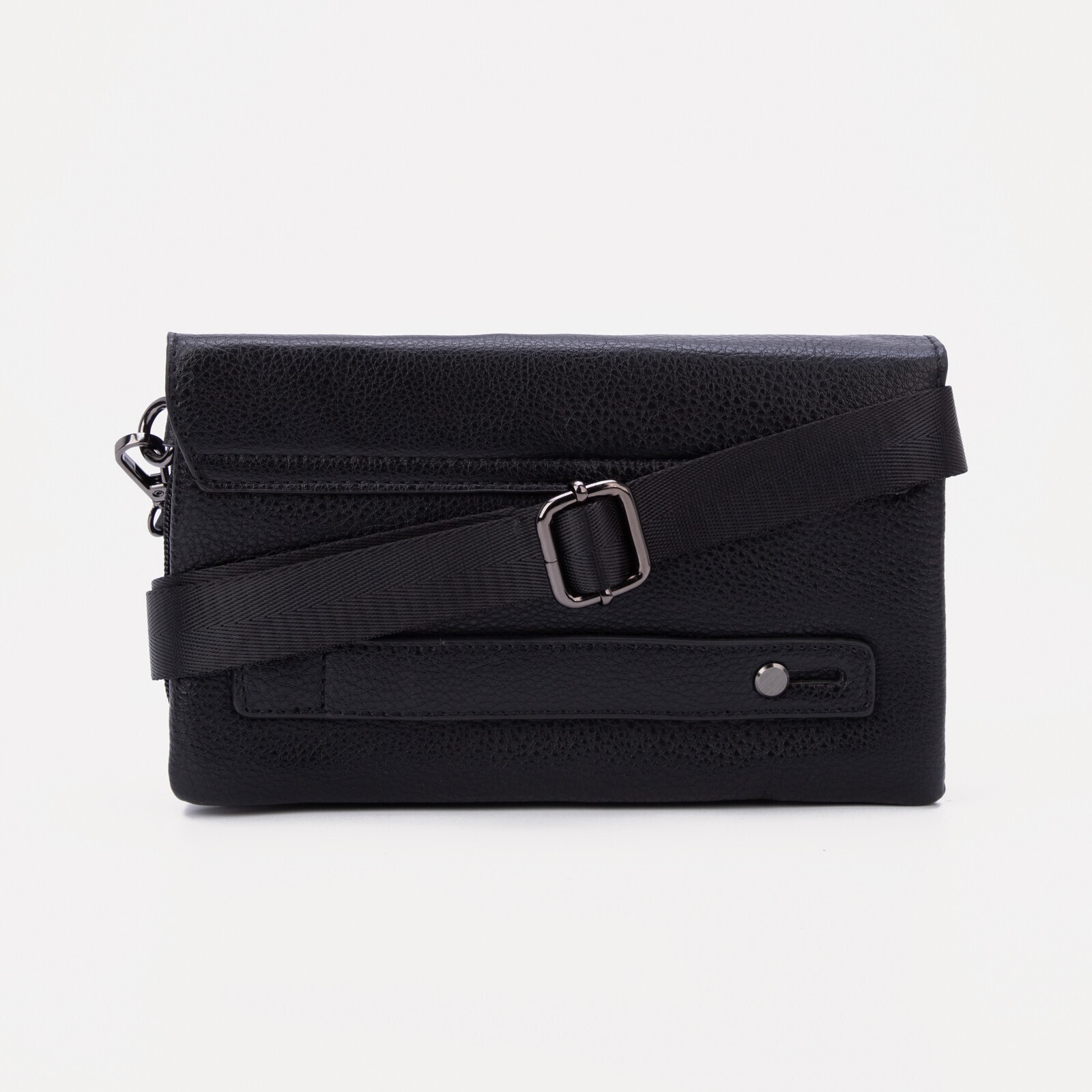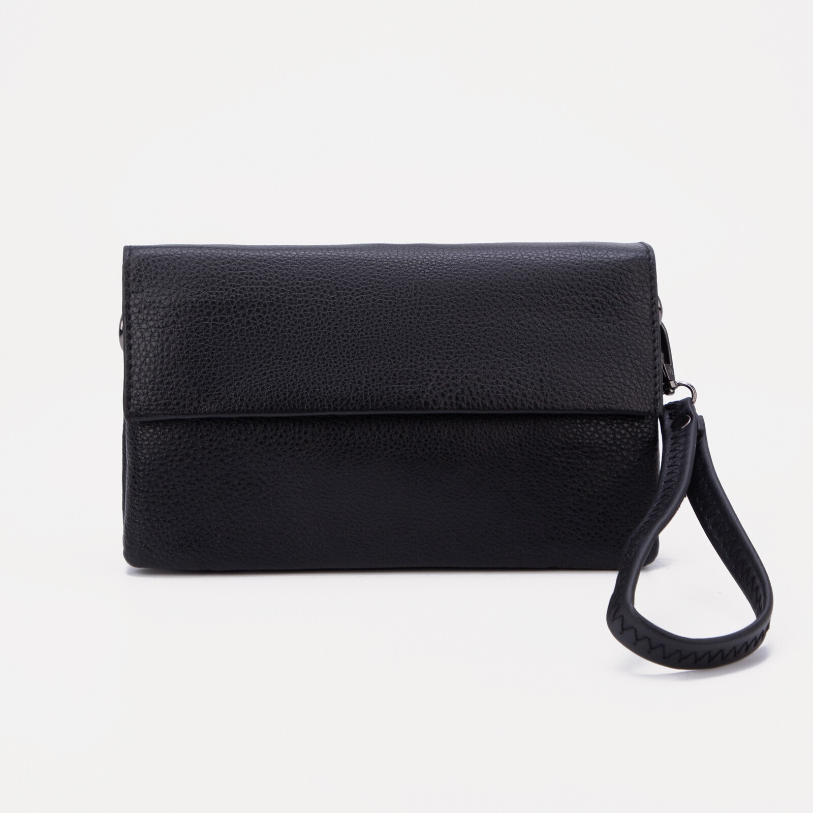 Клатч, 3 отдела на молнии, длинная стропа, ремешок на запястье, цвет чёрный