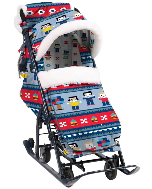 - Дополнительные элементы ручка для родителей, спинка (регулируется до положения «лежа»), подножка (с регулируемым углом наклона), ремни безопасности (5-ти точечная фиксация), козырёк (трехсекционный), чехол для ног, колеса, муфта, светоотражатели, сумка, дождевик (тент)